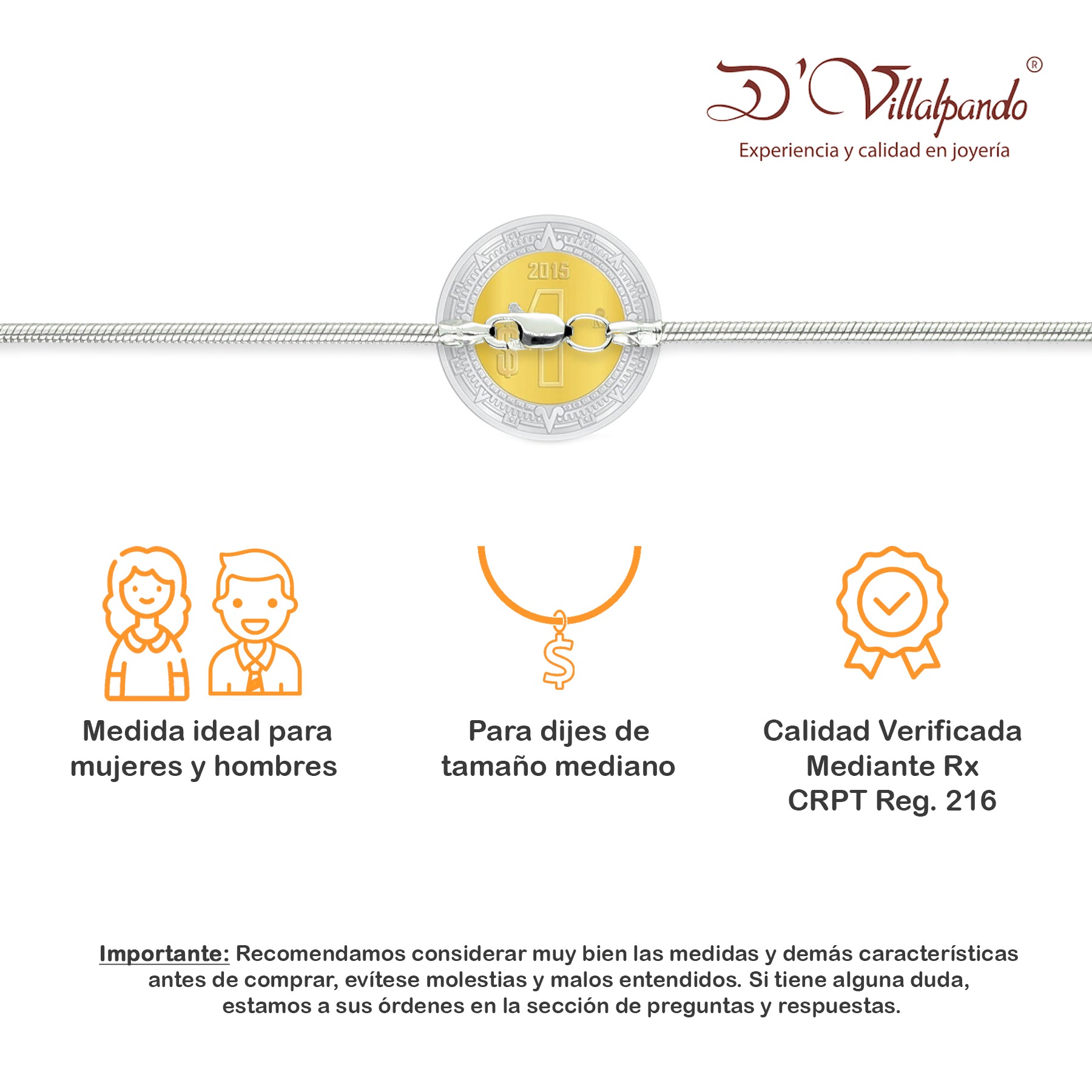 - Metal: Plata de Ley .925 (Certificado #216 CRPT)