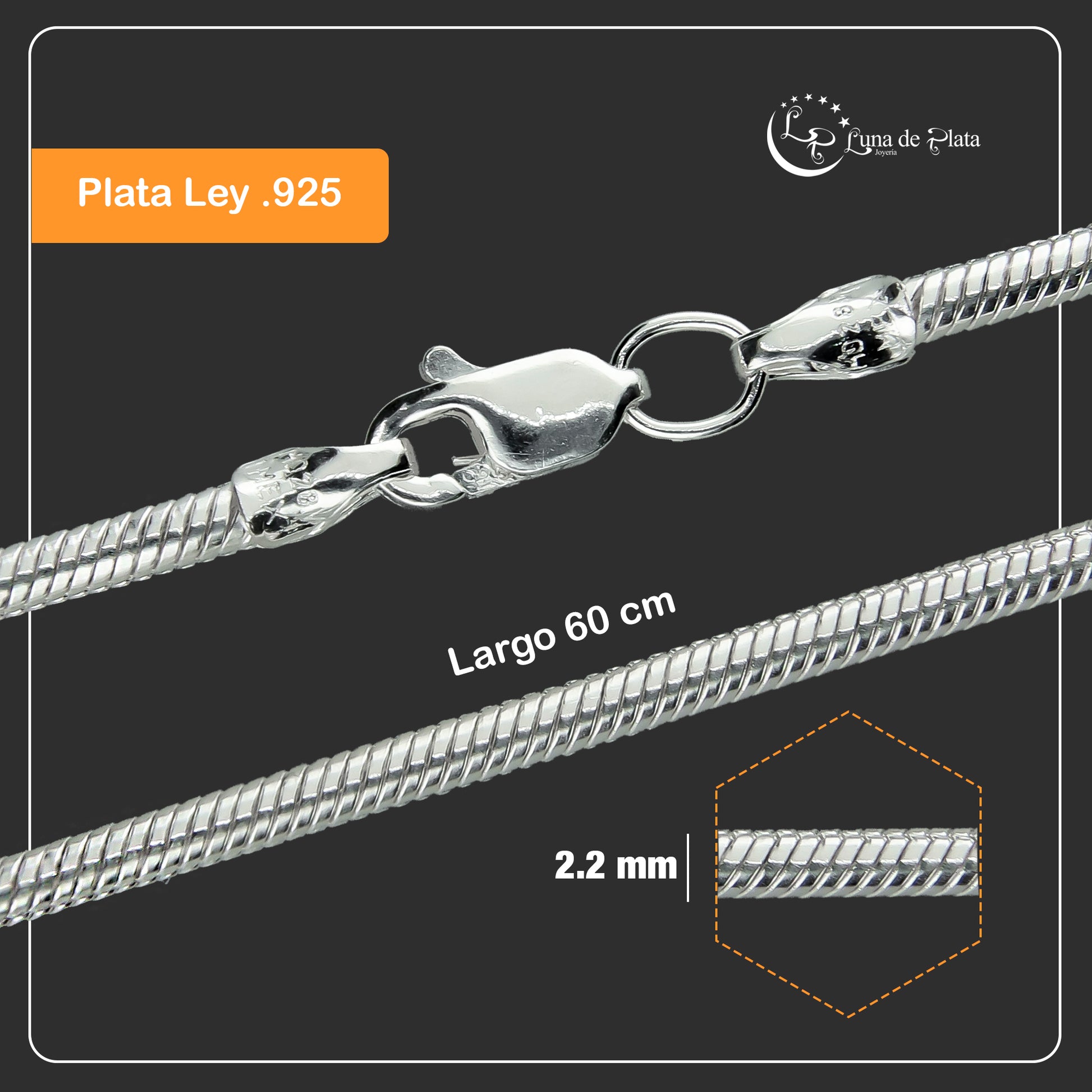 LPCU009-60 Cadena Cola De Rata 2.2 Mm X 60 Cms Plata .925 811943541