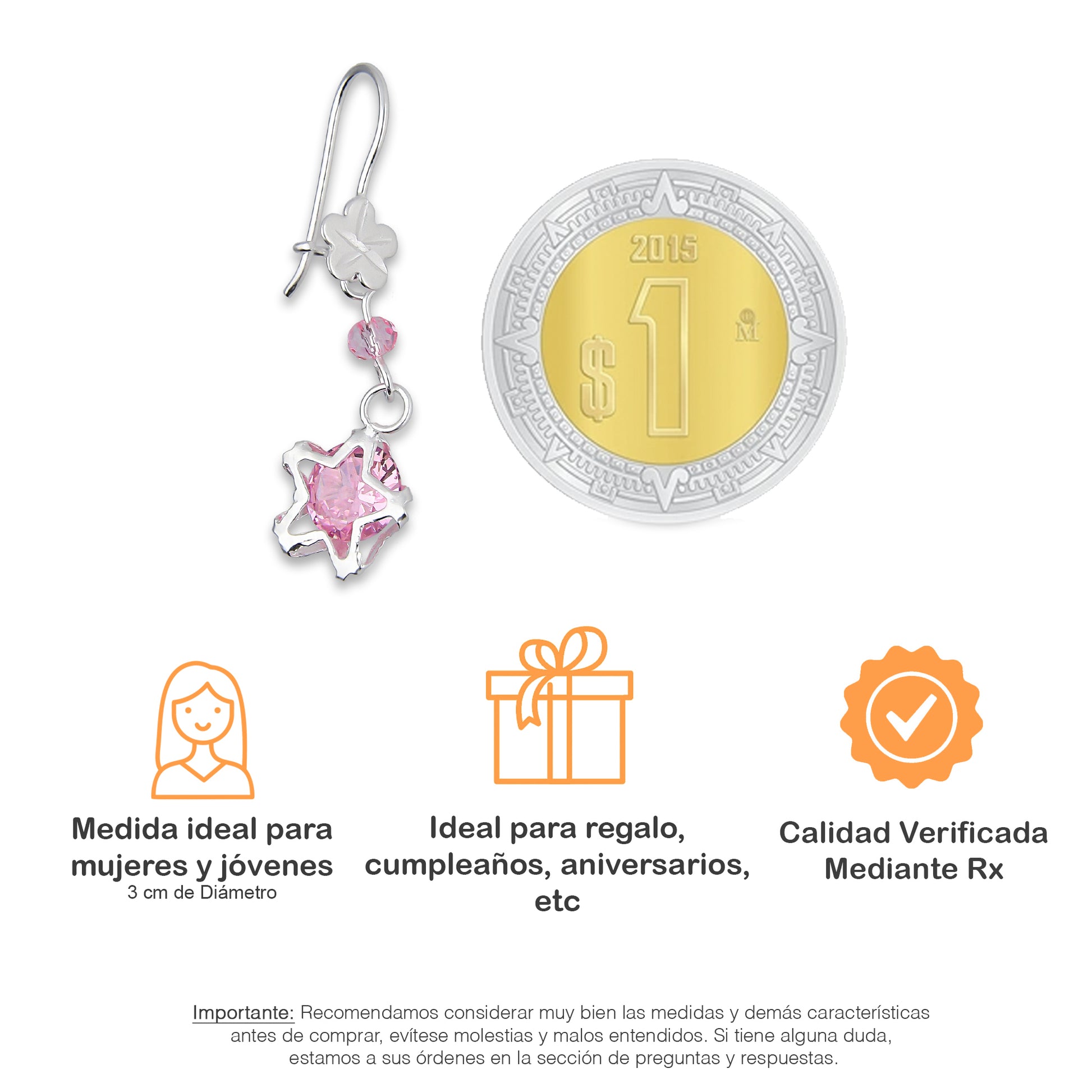 LPAA025 Aretes De Arillo Dama Estrella Colgante con Zirconia Rosa en Plata .925 MLM5165619254