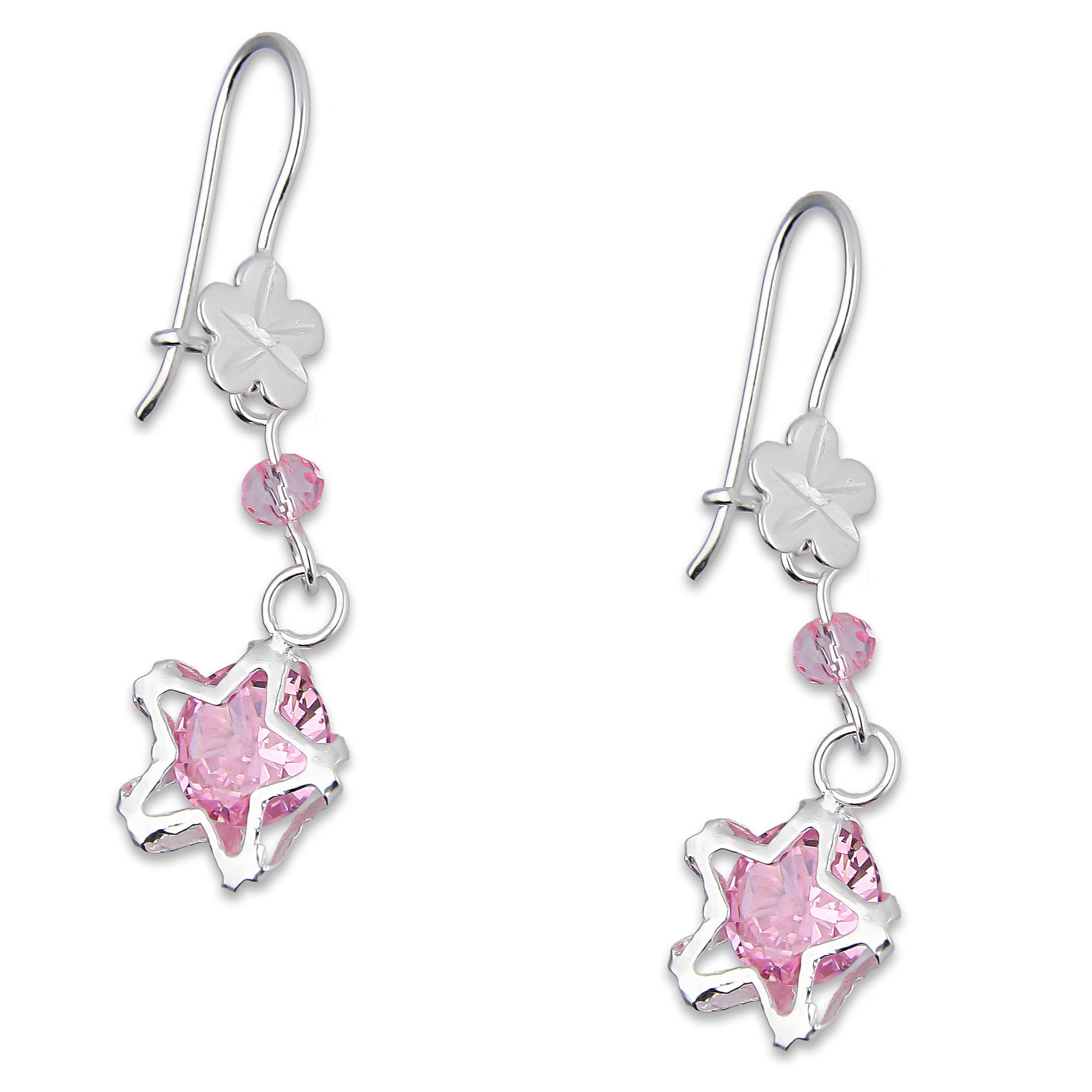 :: Aretes De Arillo Dama Estrella Colgante con Zirconia Rosa en Plata .925