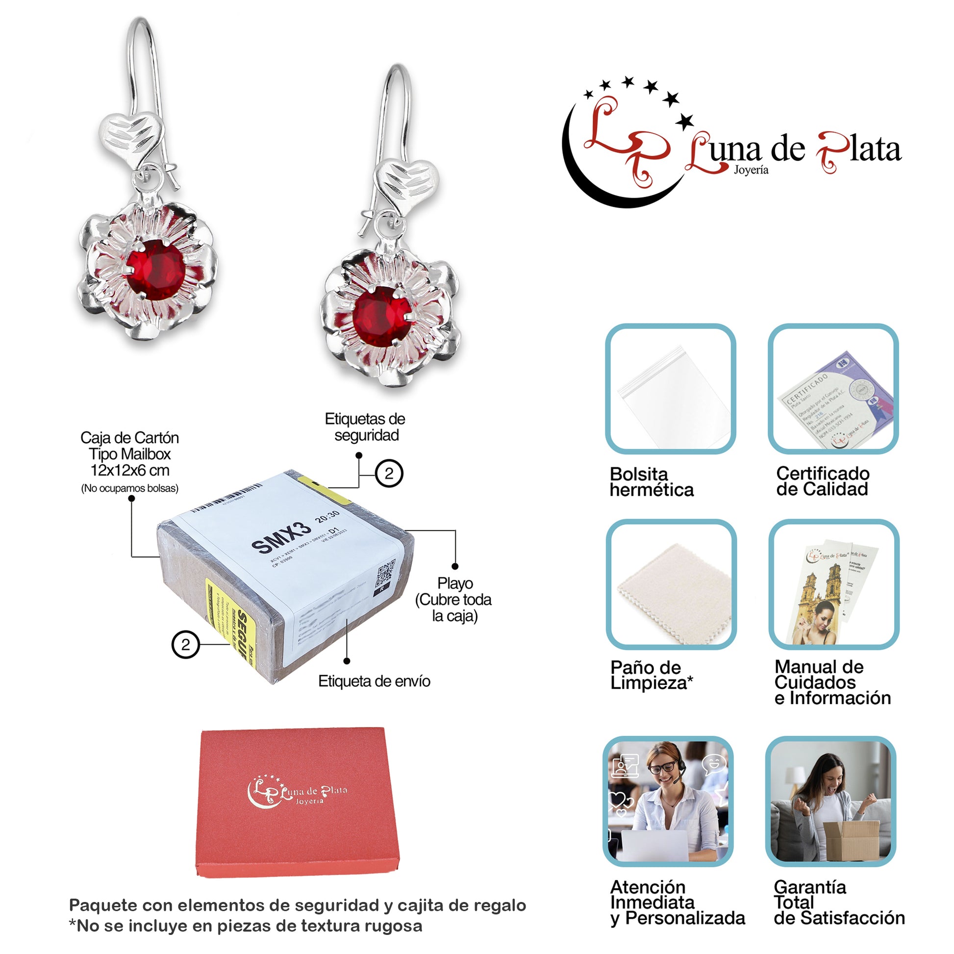 LPAA029 Aretes De Arillo Dama Clavel Colgante con Zirconia Roja en Plata .925 MLM5165649922