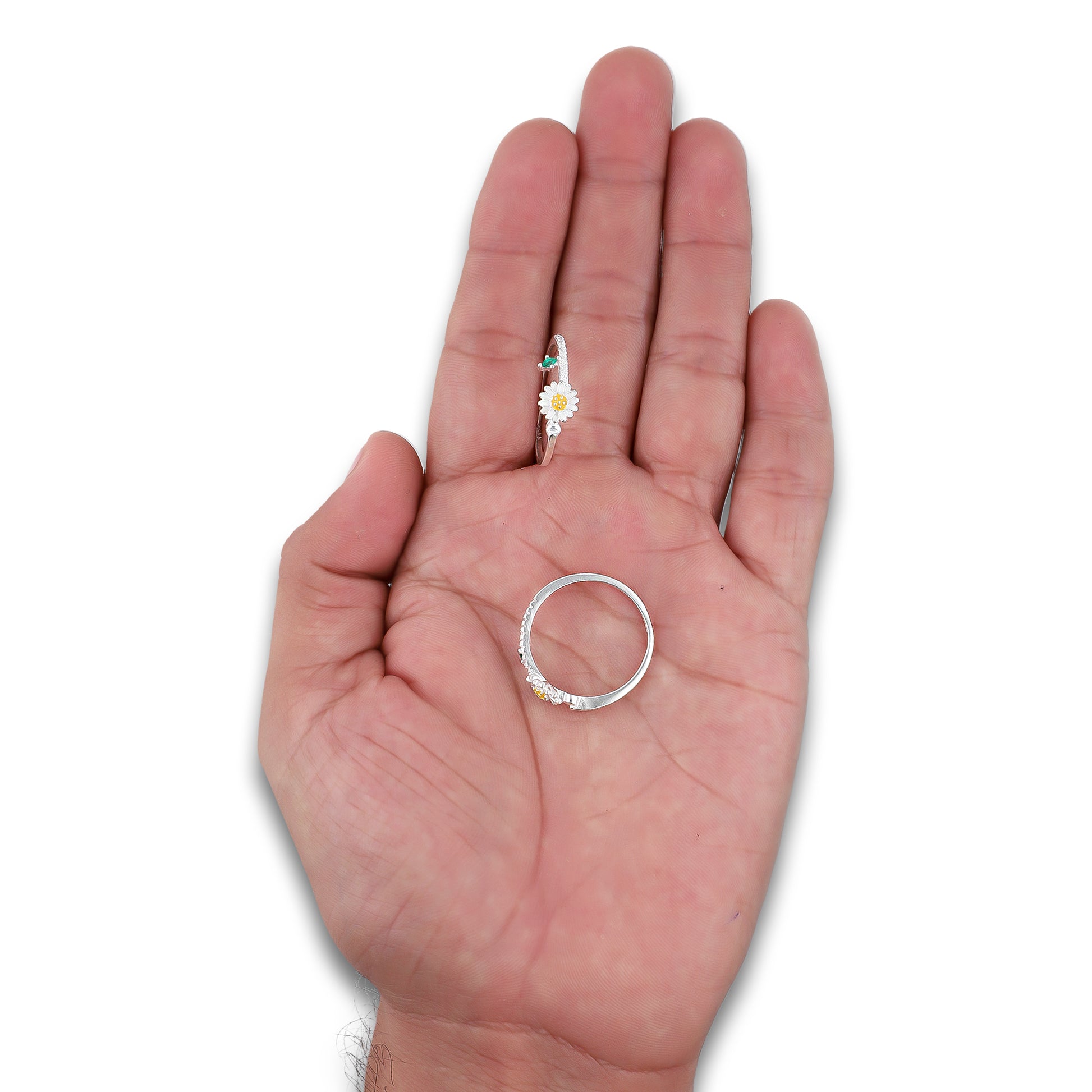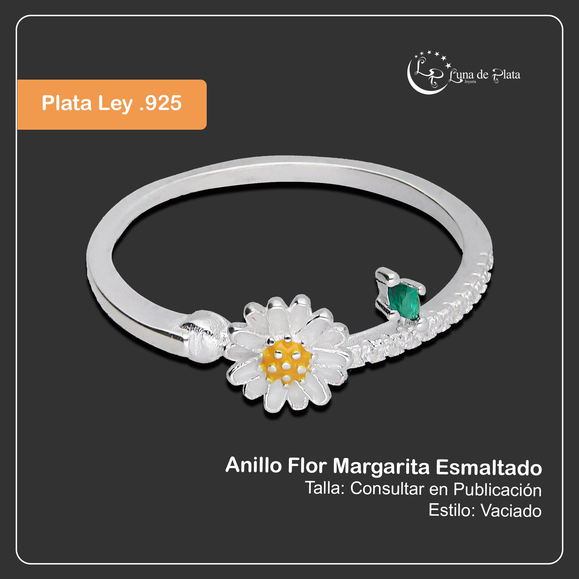 LPAD107 Anillo Flor Margarita Esmaltado Plata .925 Taxco Gro 2628932227