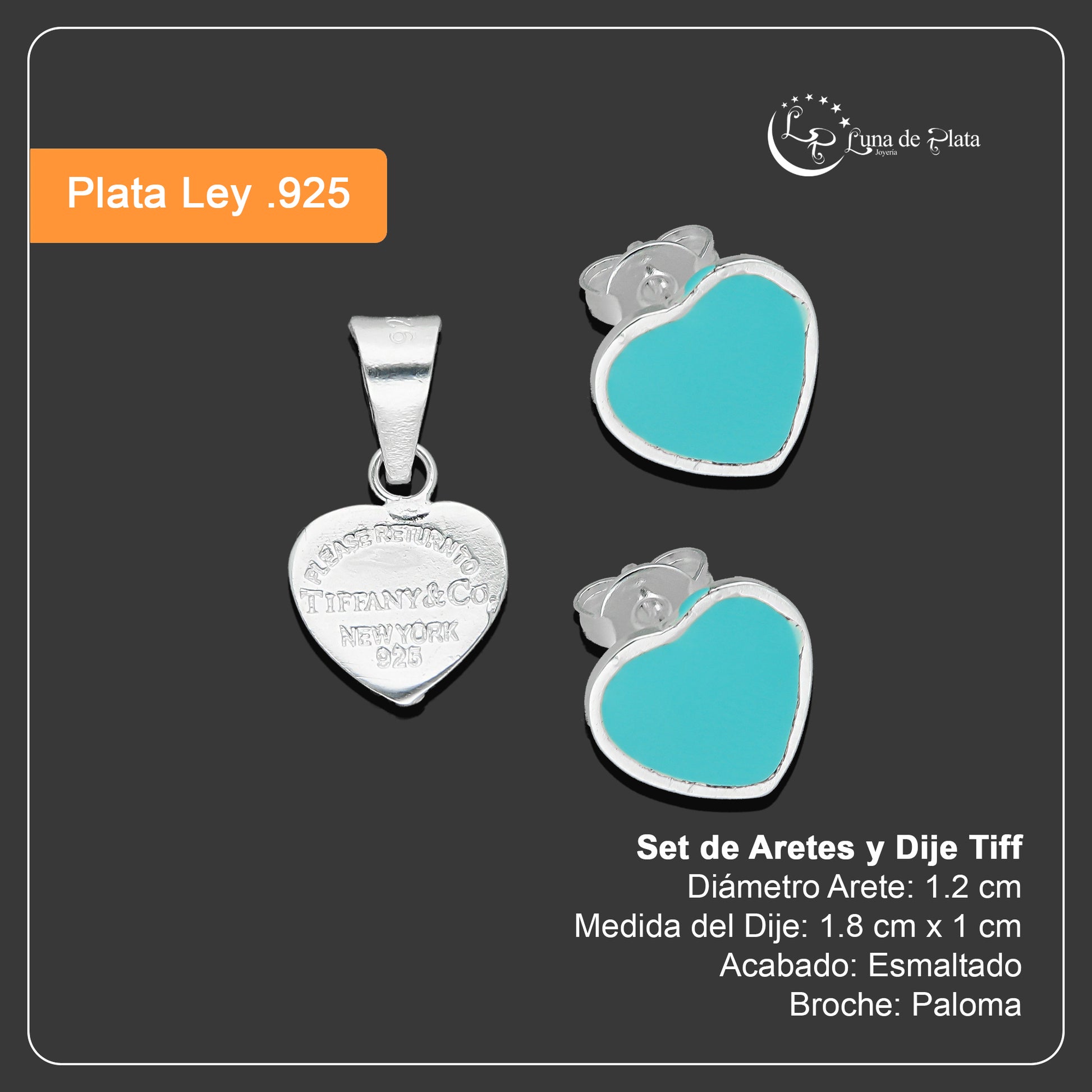 LPADJ070 Set de Aretes y Dije Tiff Diámetro 1.8 cm en Plata Ley .925