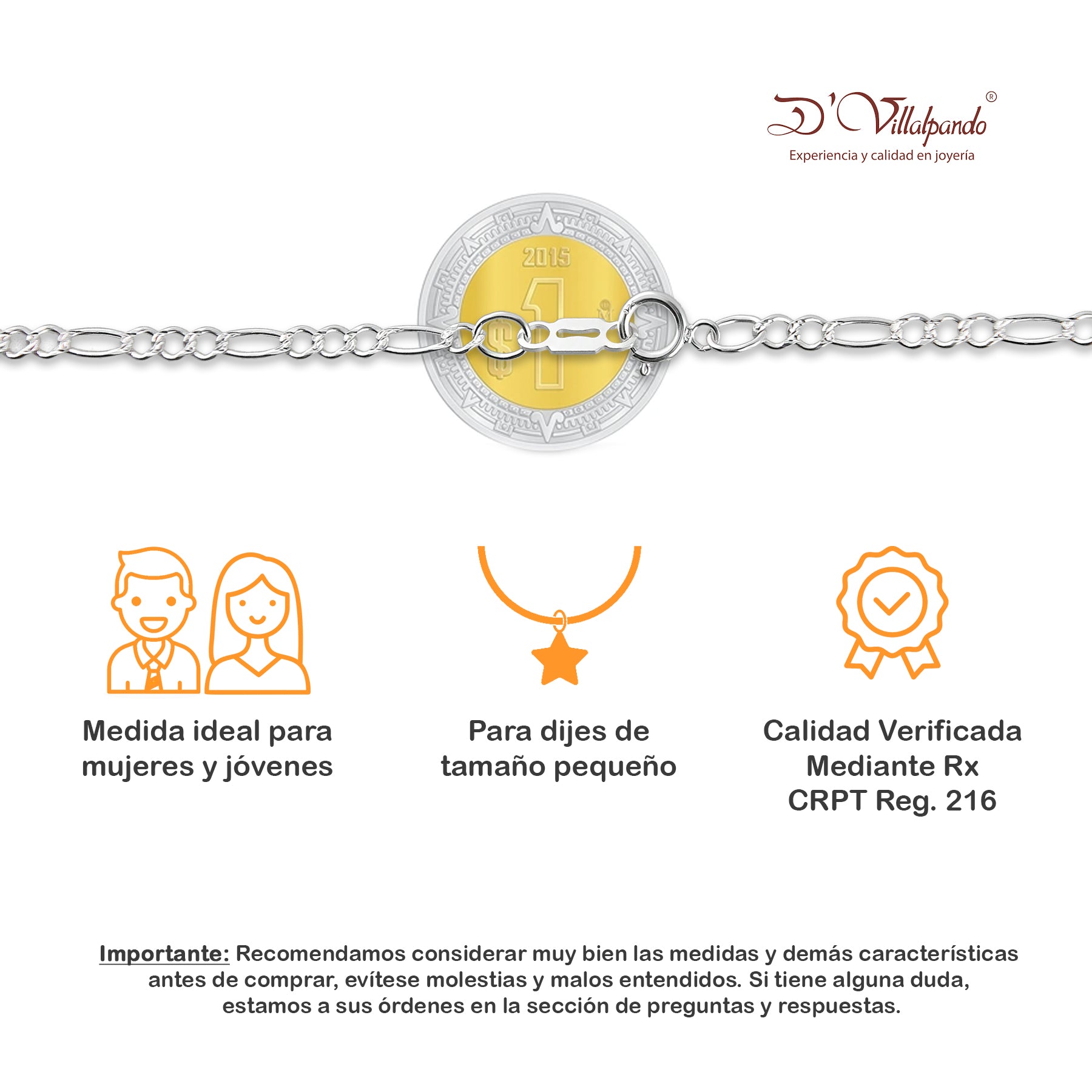 - Metal: Plata de Ley .925 (Certificado #216 CRPT)