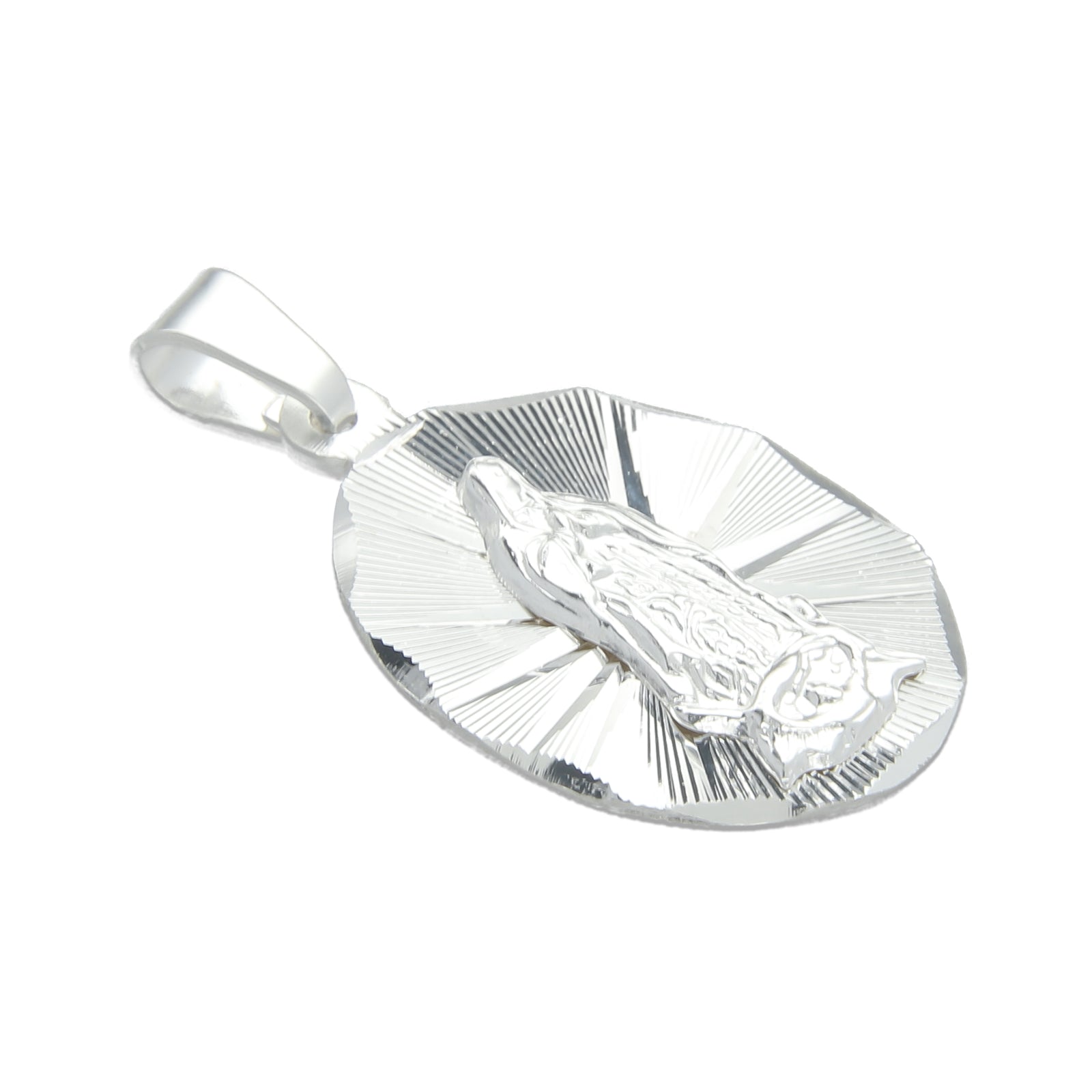 - Medalla Virgen Oval Bisel Diamantado 3.8 x 1.9 cm en Plata .925