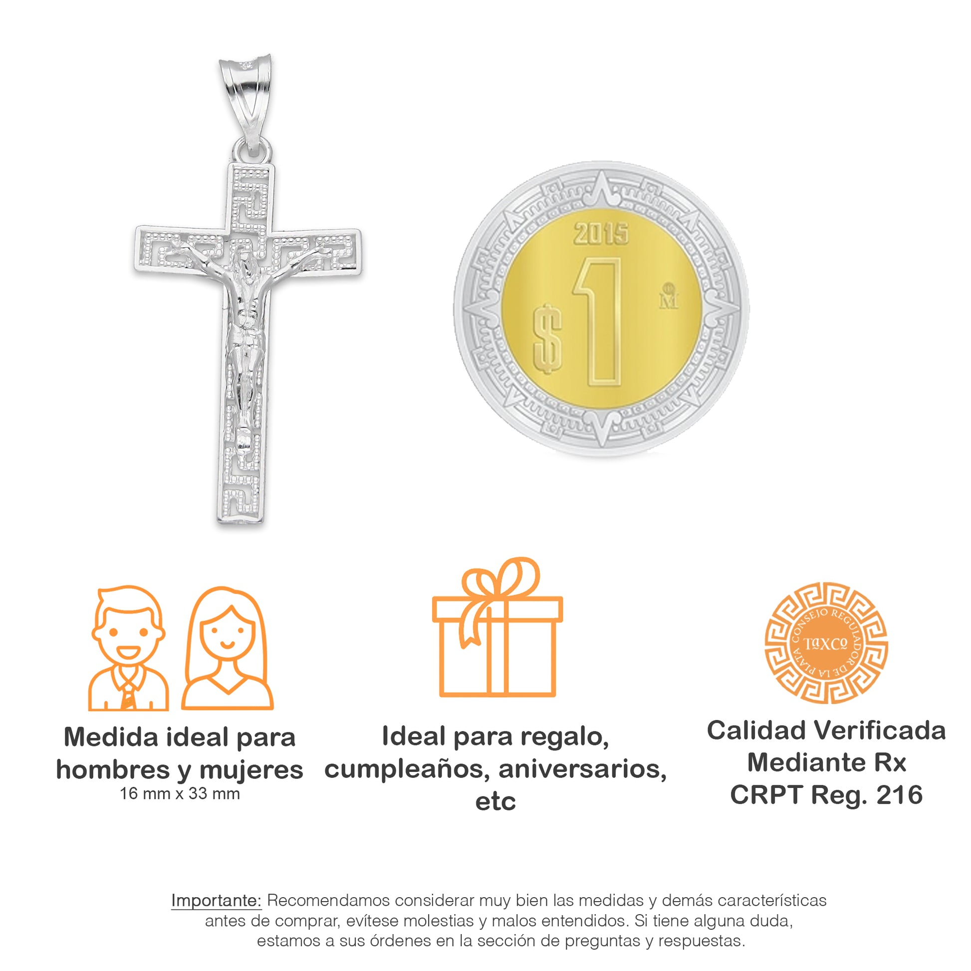 - Metal: Plata de Ley .925 (Certificado #216 CRPT)
