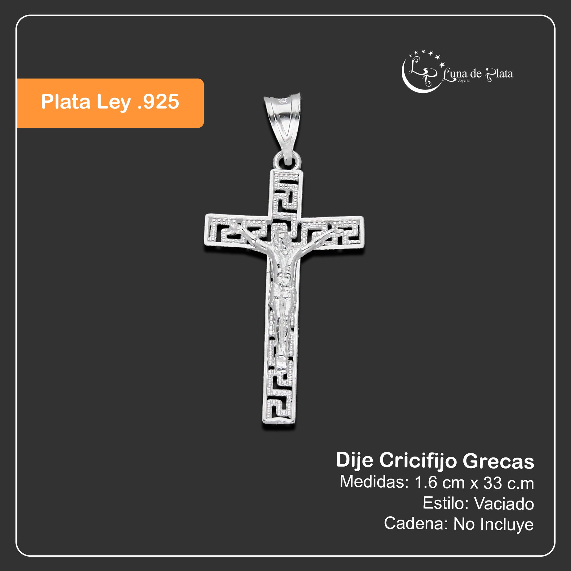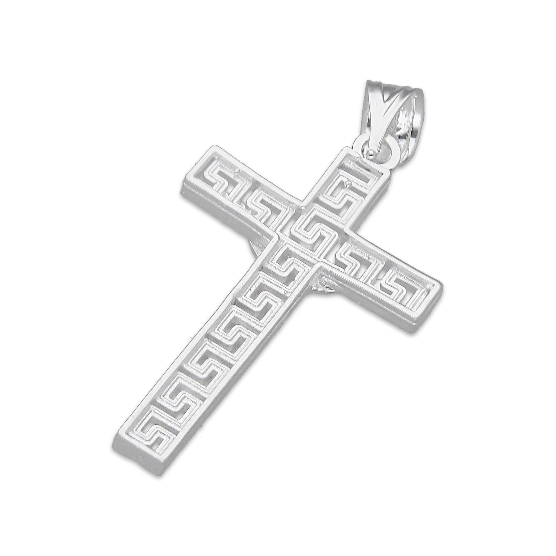 LPDJ292 Dije Crucifijo Grecas 1.6 cm x 3.3 cm en Plata .925 2689499403
