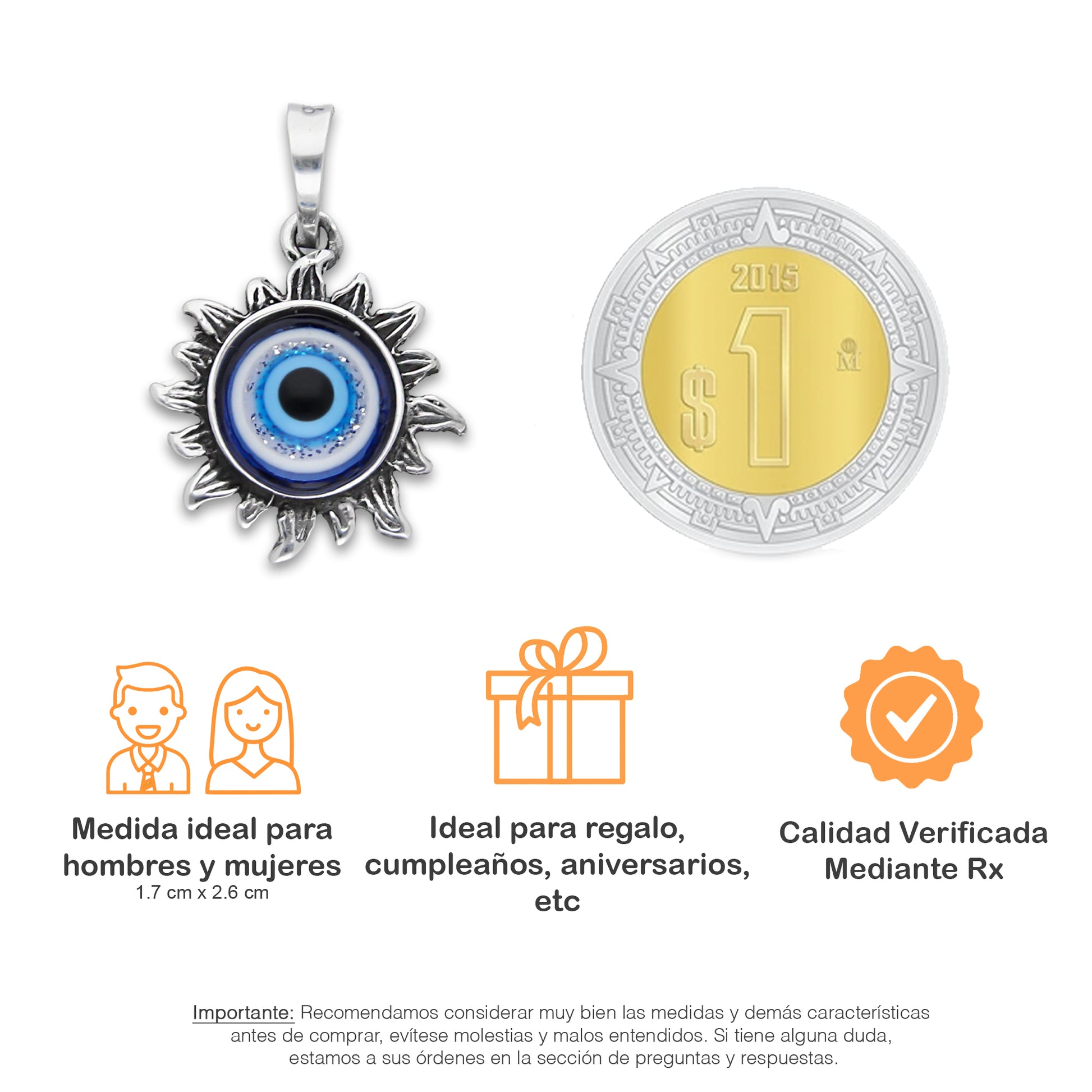 LPDJ300 Dije Ojo Turco Chico Petalos 1.7 cm x 2.6 cm en Plata .925 4671763220