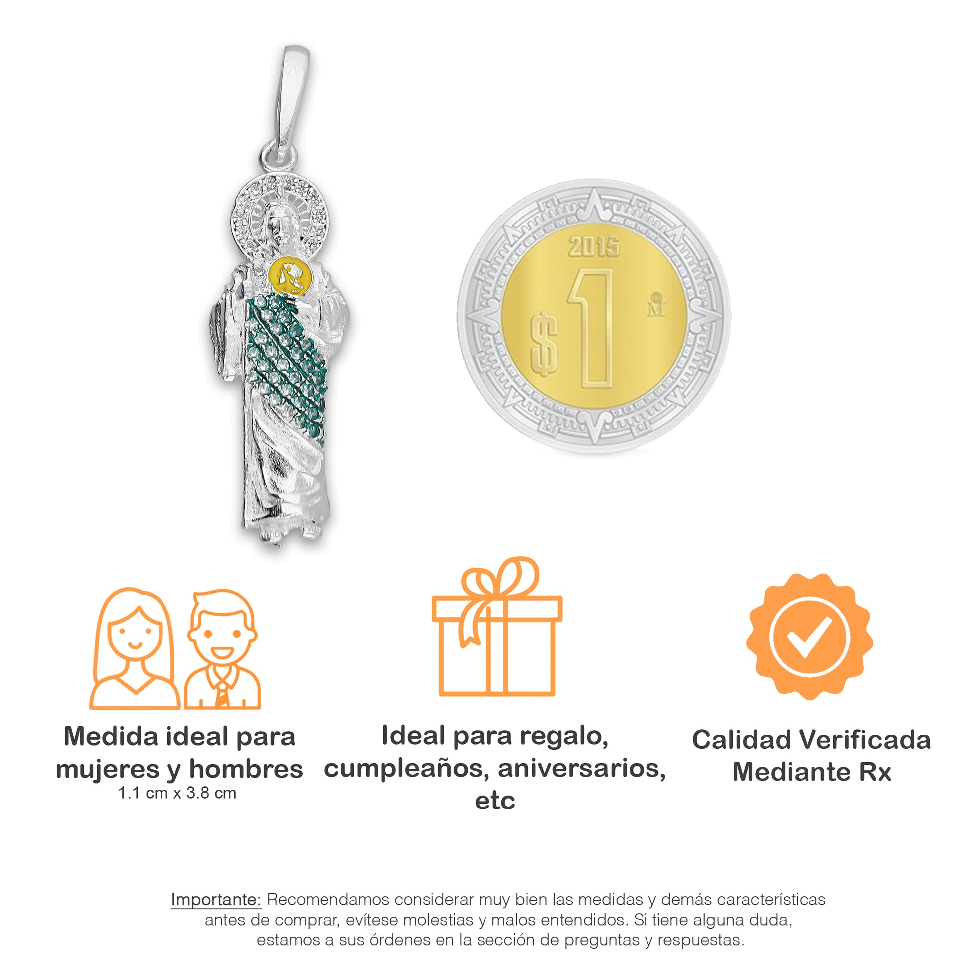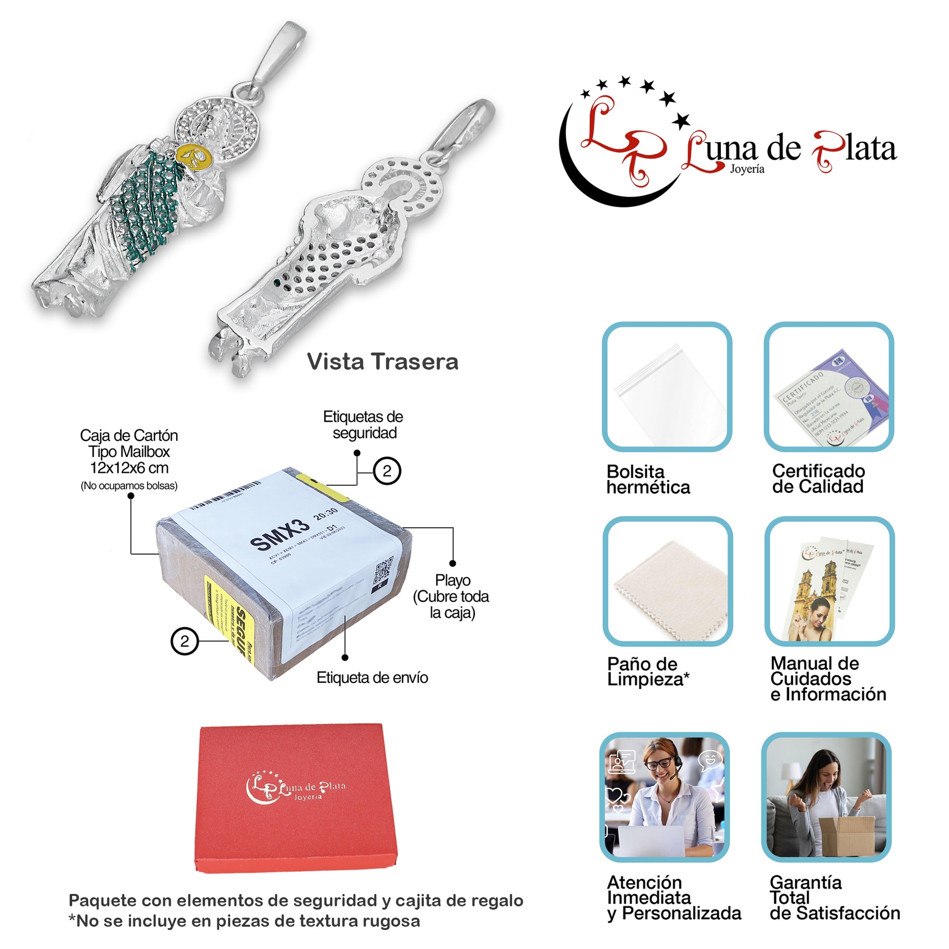 - Metal: Plata de Ley .925 (Certificado #216 CRPT)