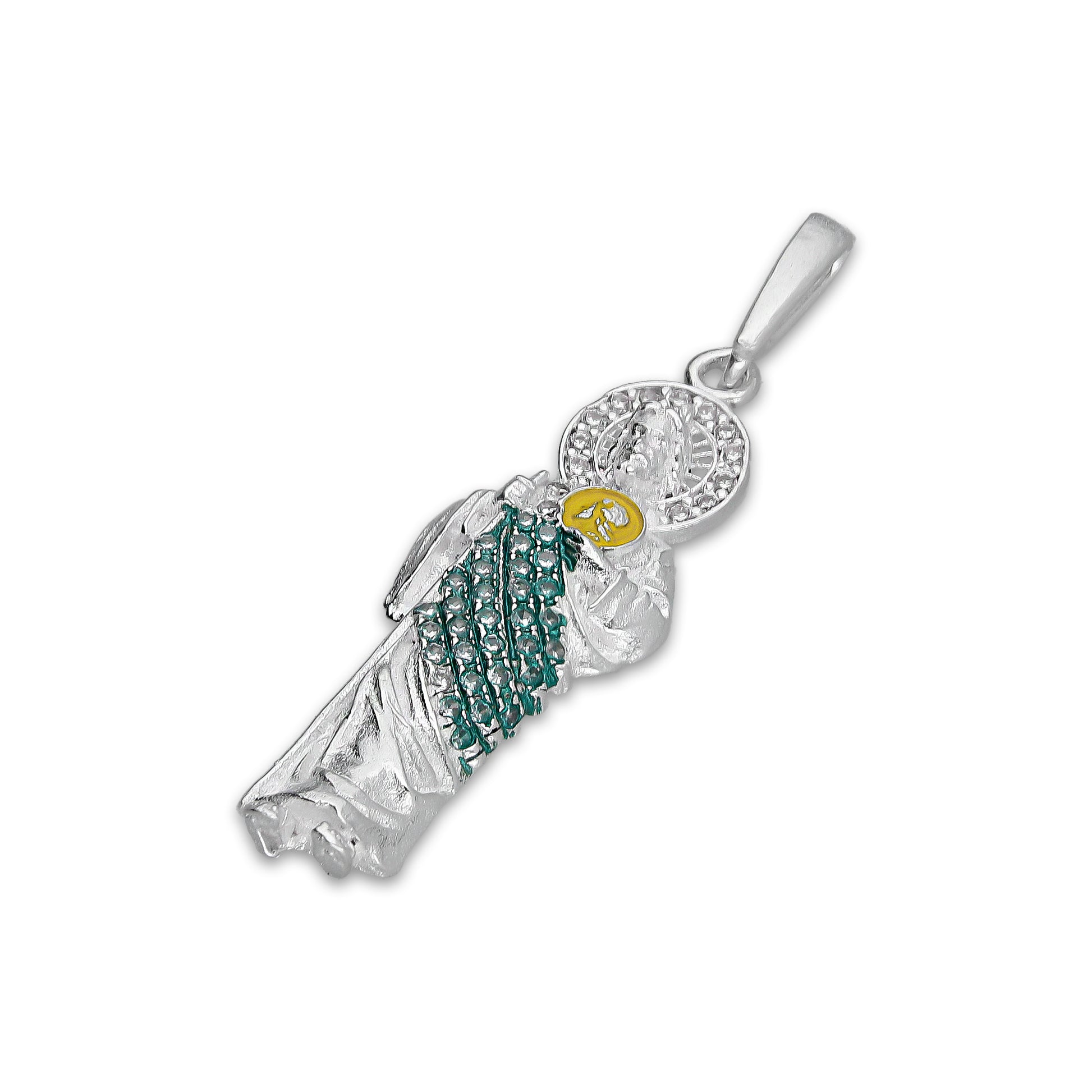 :: Dije San Judas Manto Verde Medallón Amarillo 1.1 cm x 3.8 cm en Plata .925