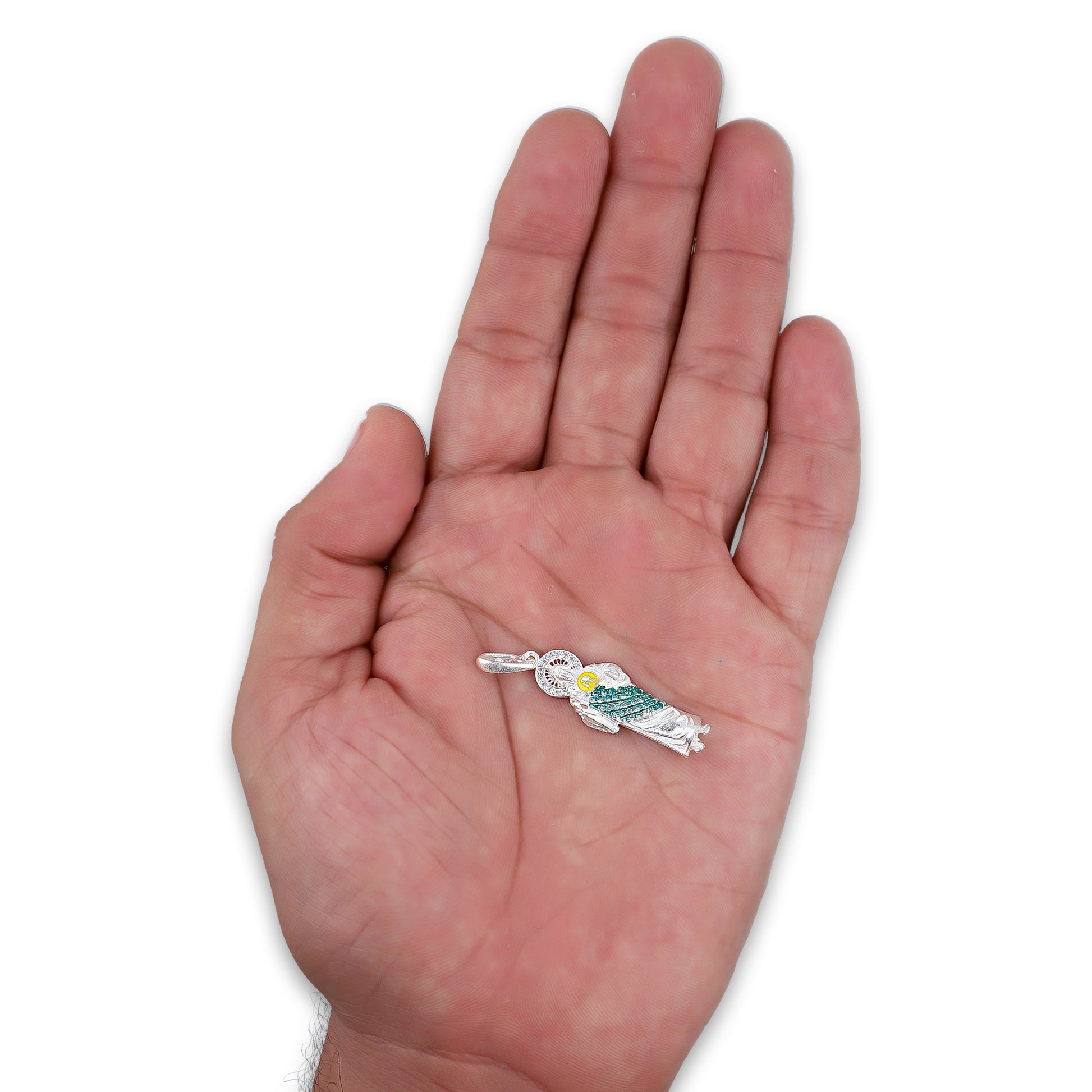 LPDJ303 Dije San Judas Manto Verde Medallón Amarillo 1.1 cm x 3.8 cm en Plata .925 5204963958