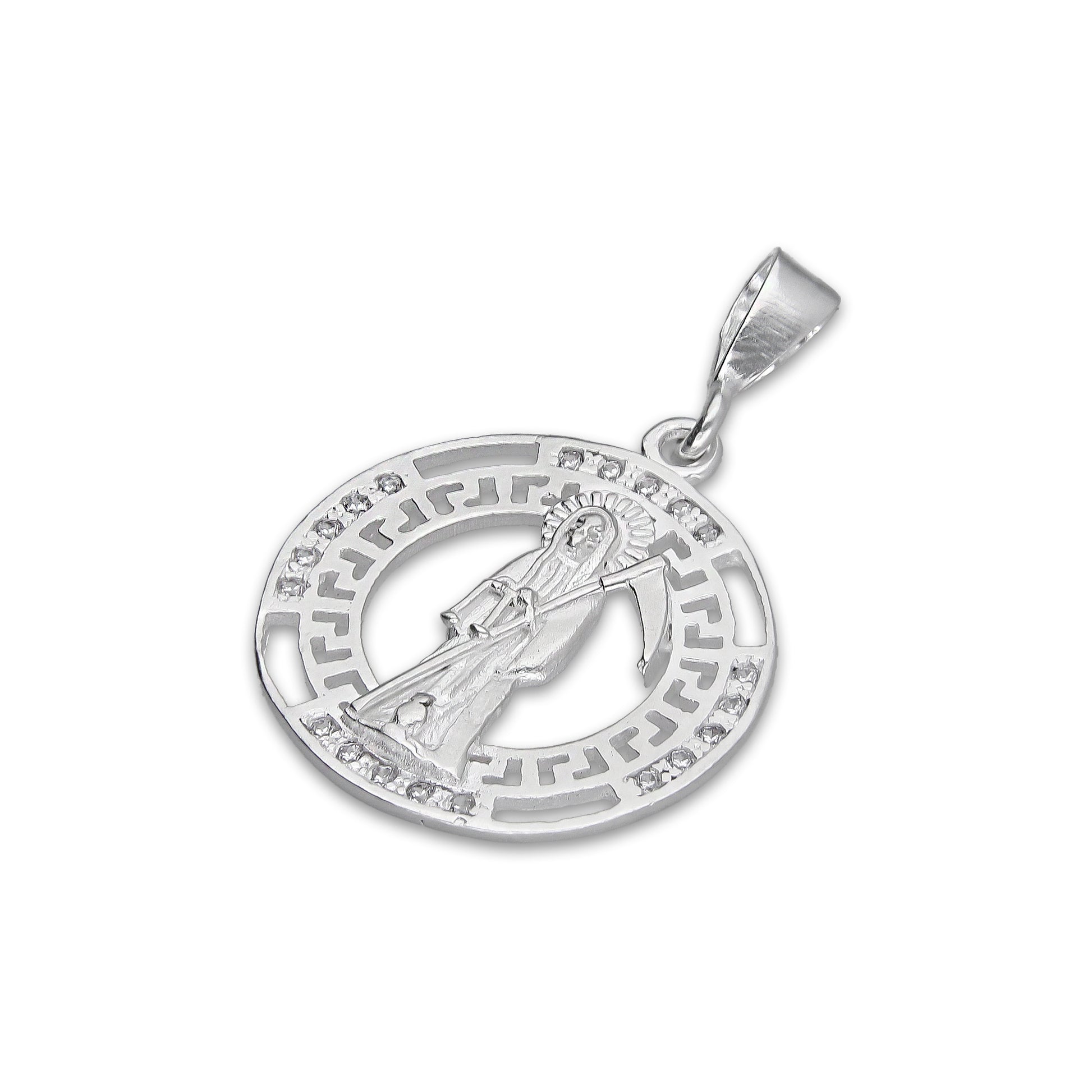 :: Dije Medalla Santa Muerte Grecas 2.4 cm x 3.5 cm en Plata .925
