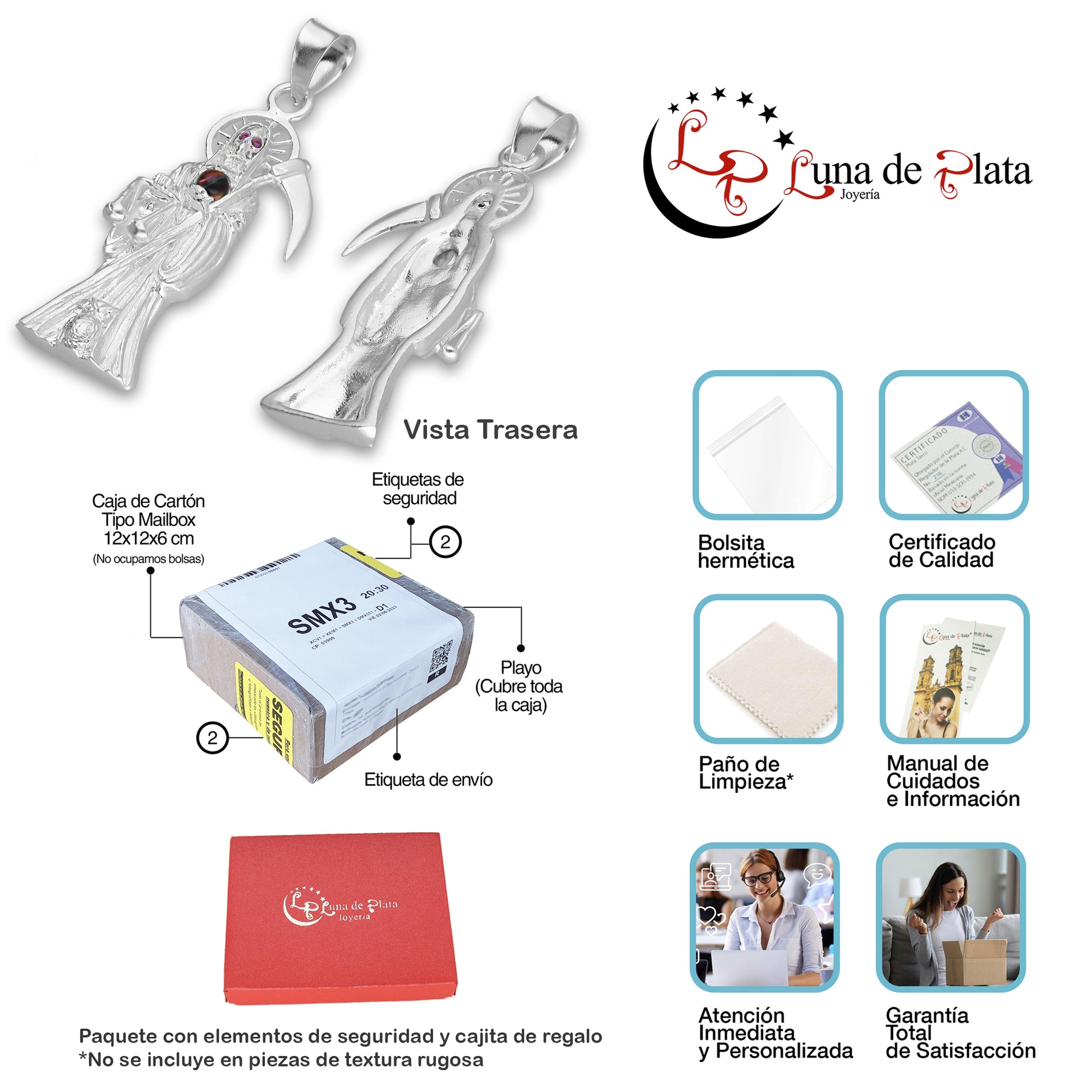 - Metal: Plata de Ley .925 (Certificado #216 CRPT)