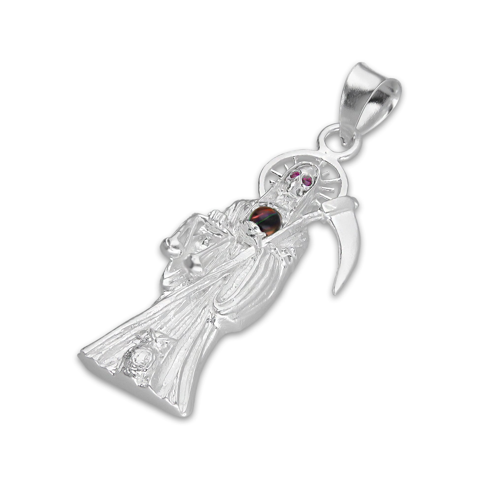 :: Dije Santa Muerte Mundo Iris 2 cm x 5.7 cm en Plata .925