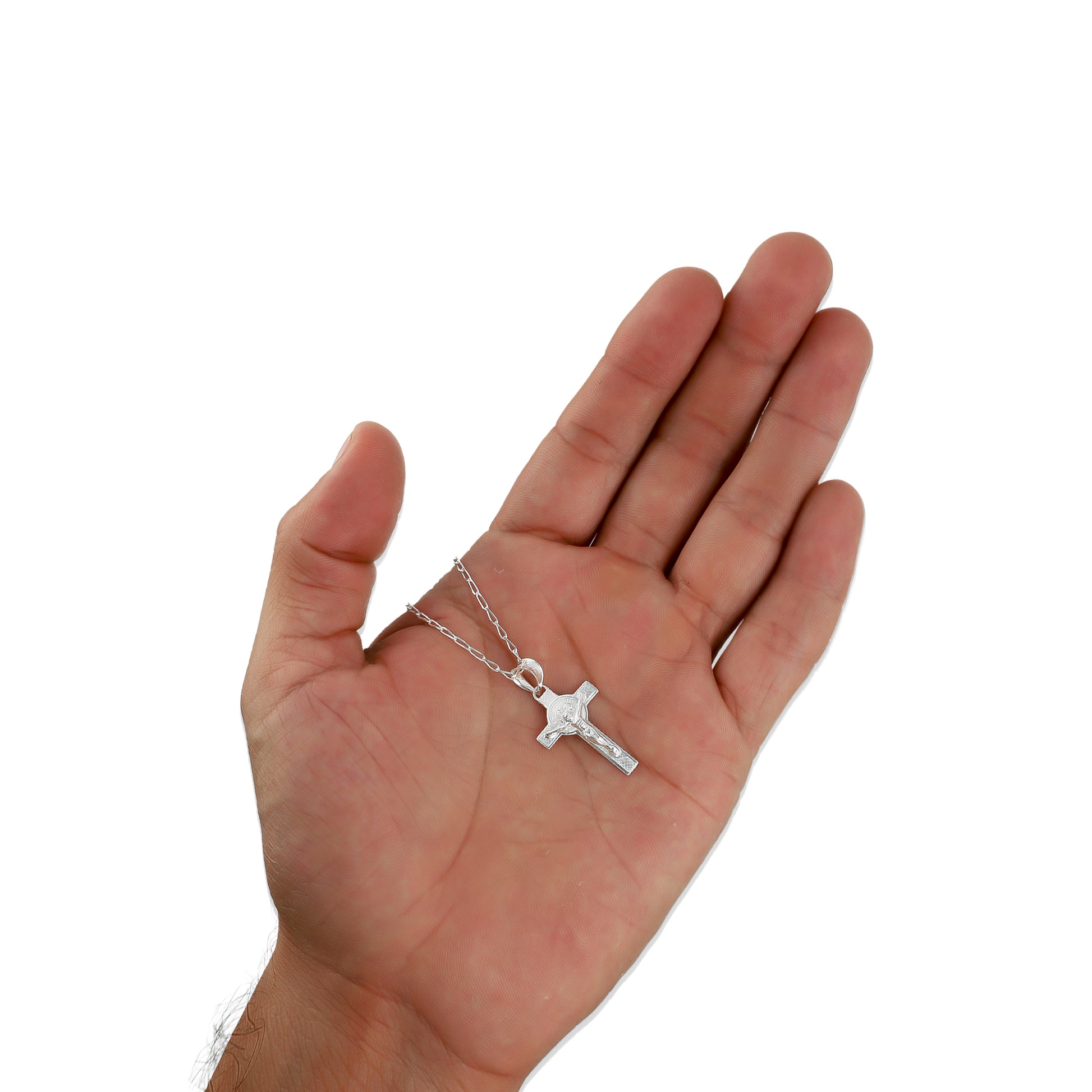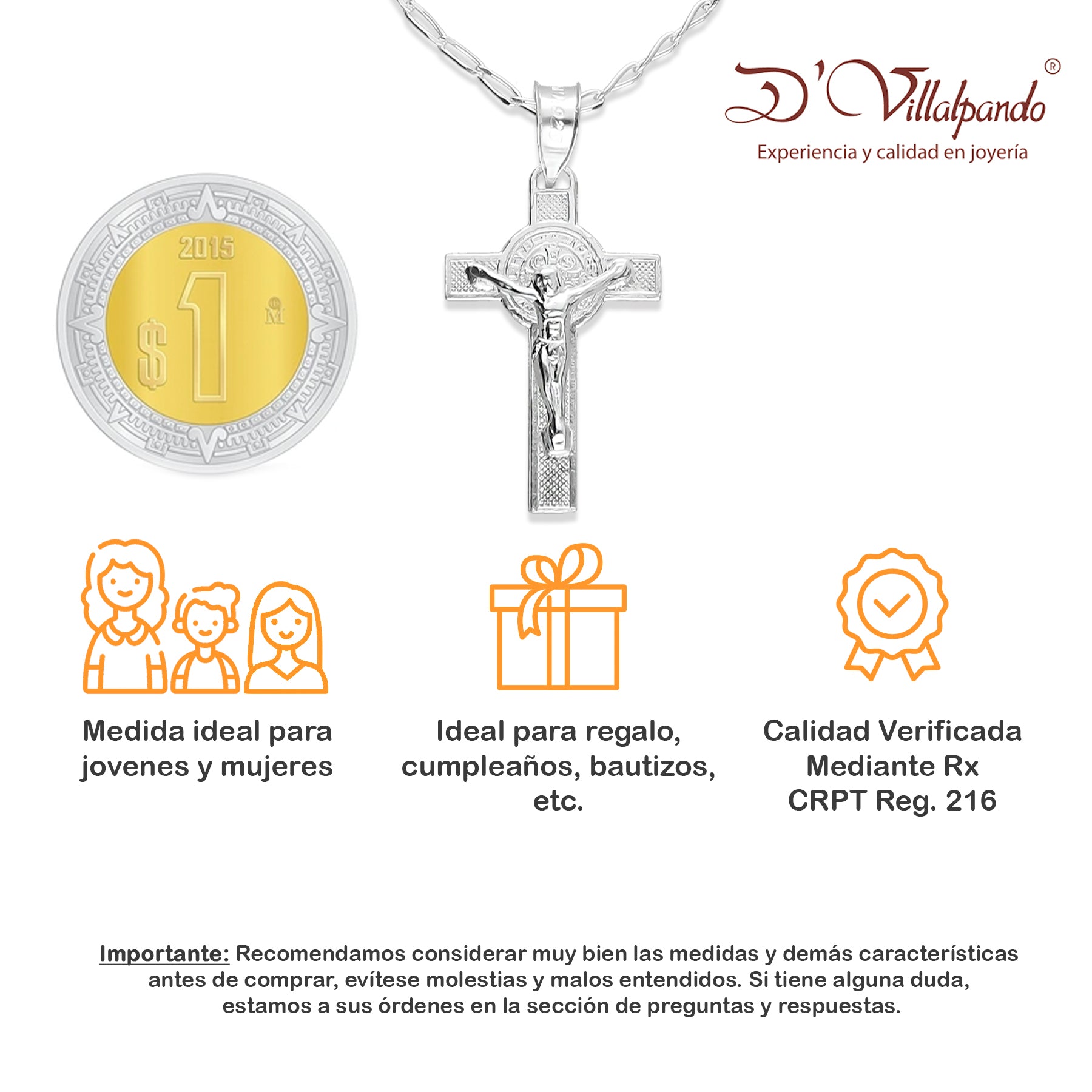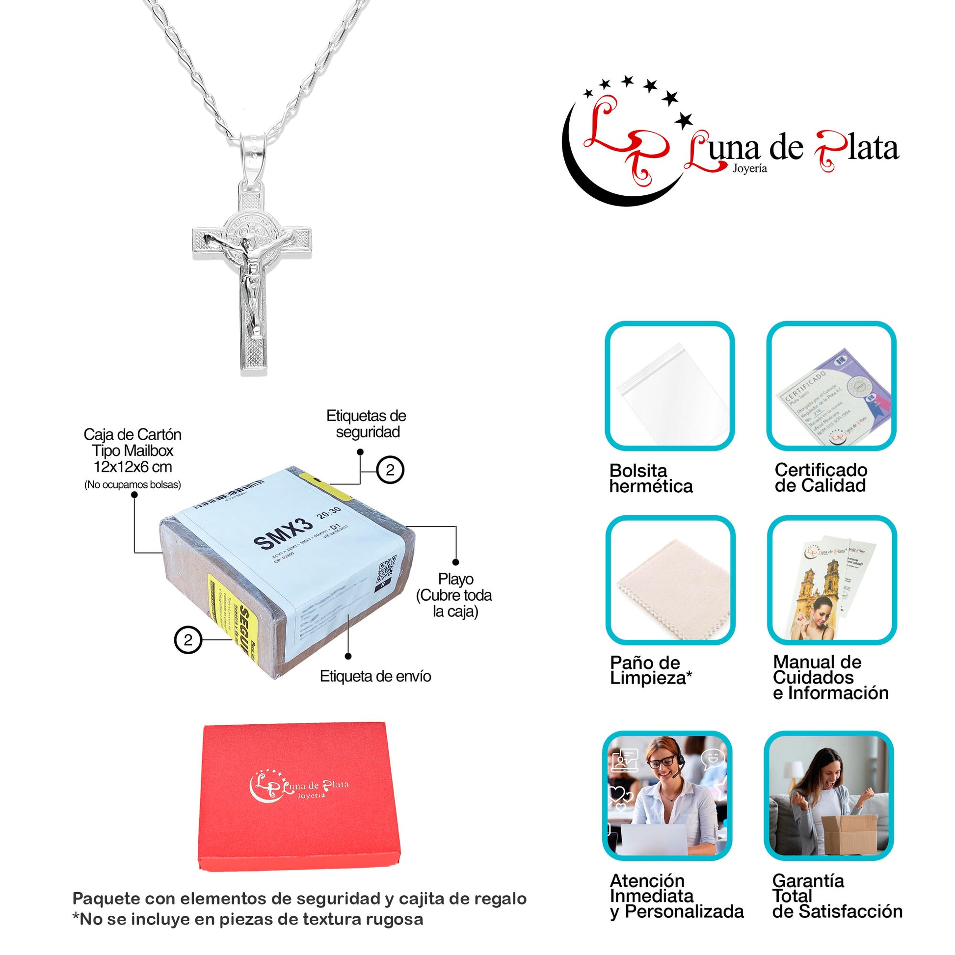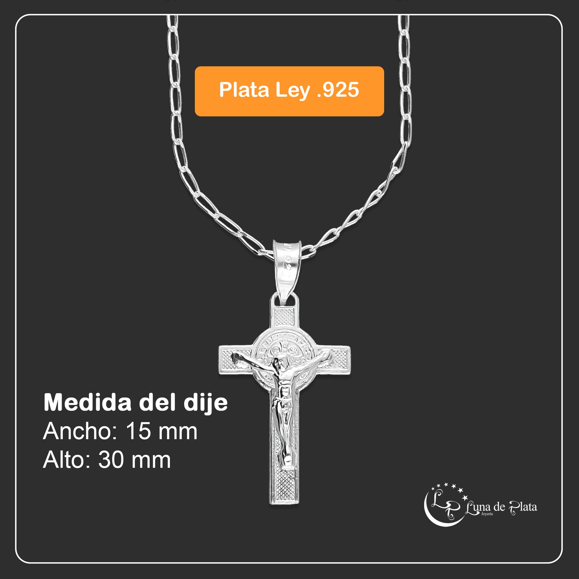 LPDP103 Dije Cruz Sn Benito 2 Vistas Mini + Cadena 45 cm Plata .925 Taxco 2031379545
