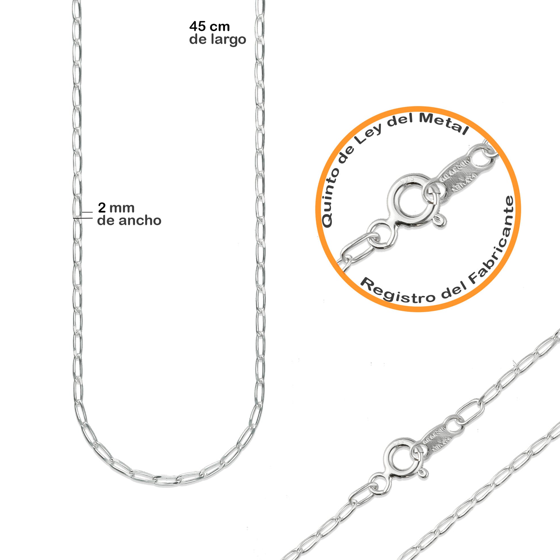 - Cadena: 45 cm de largo x 2 mm de ancho