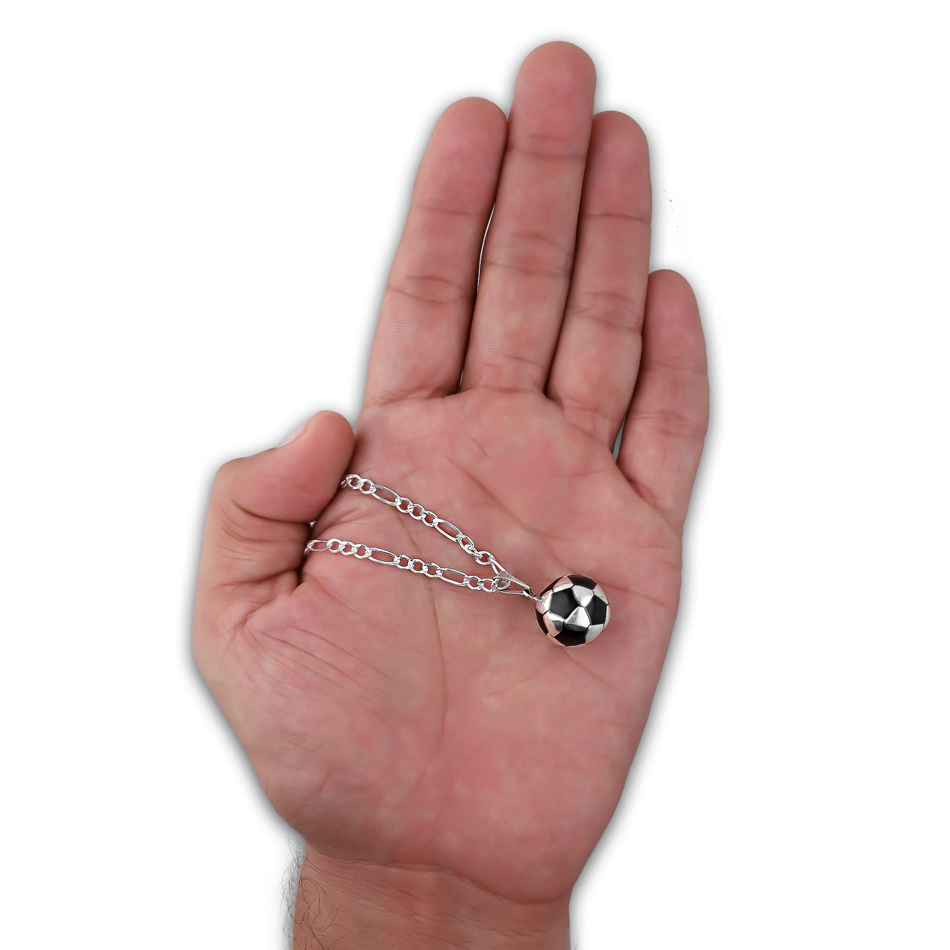 :: Dije Balón Futbol Grande + Cadena 60 cm Plata .925 Taxco Gro