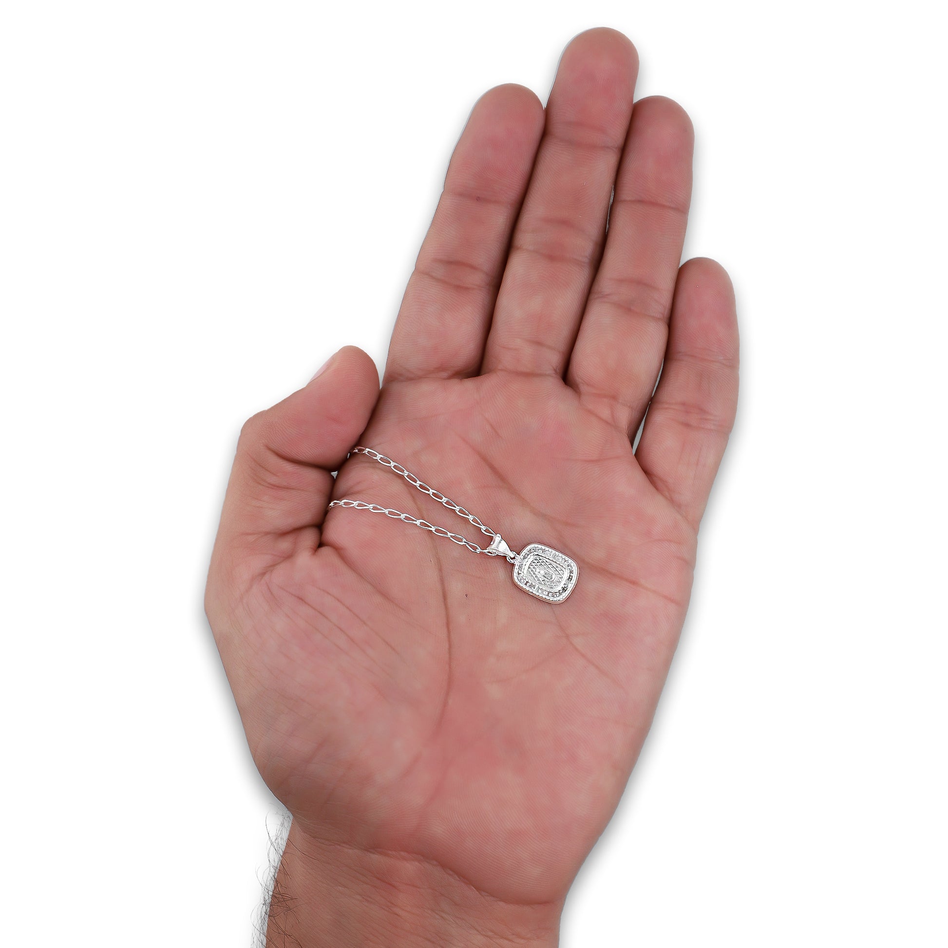 :: Cadena + Dije Medalla Virgen Rectángulo Micro en Plata .925