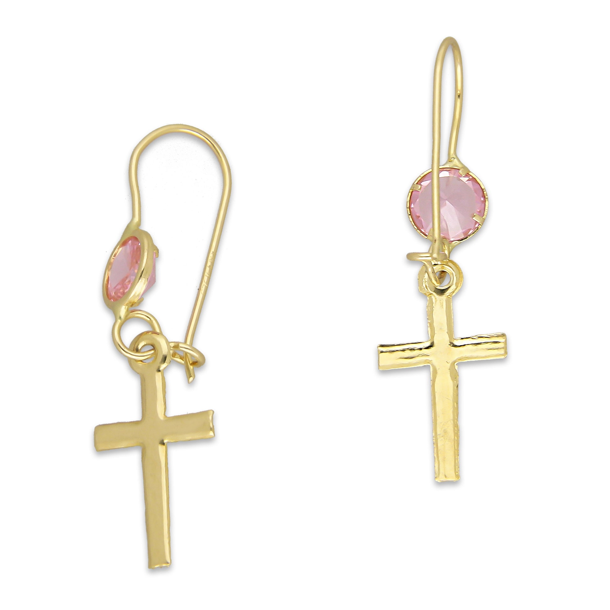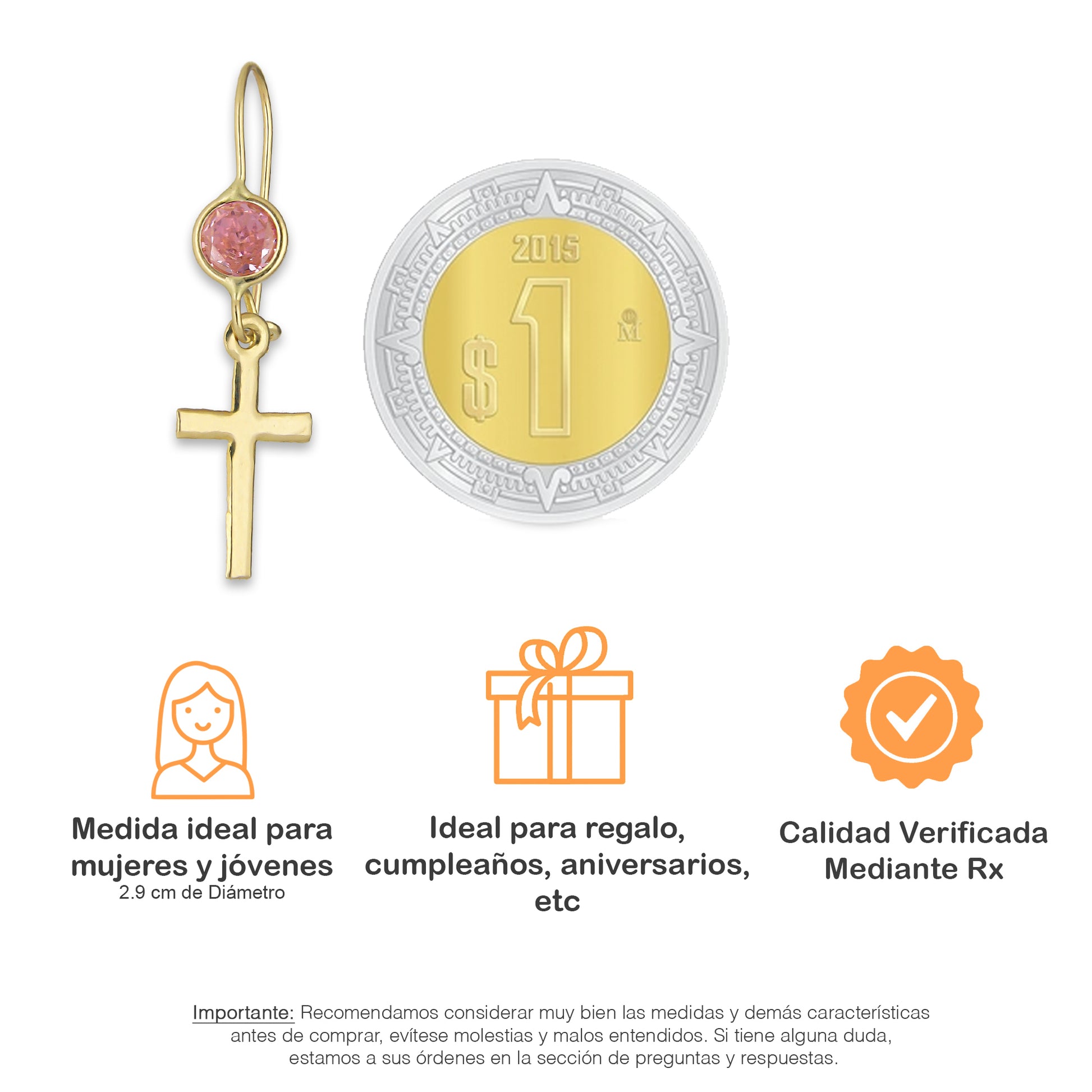 LPEAR002 Arete Arillo Oro Sólido 10K Modelo Cruz Colgante con Zirconia Rosa 2531023063
