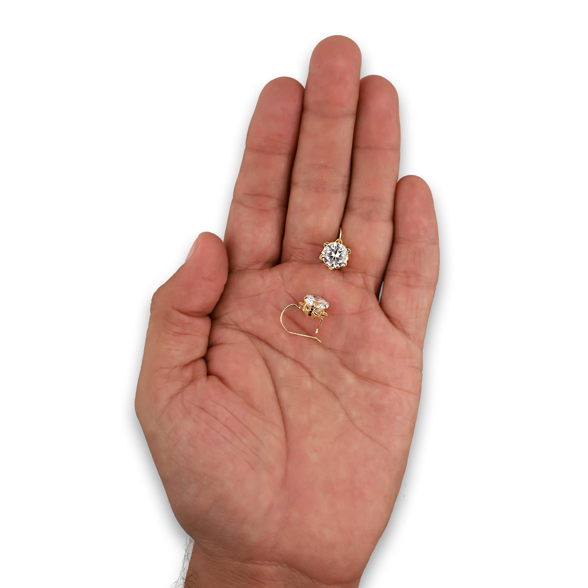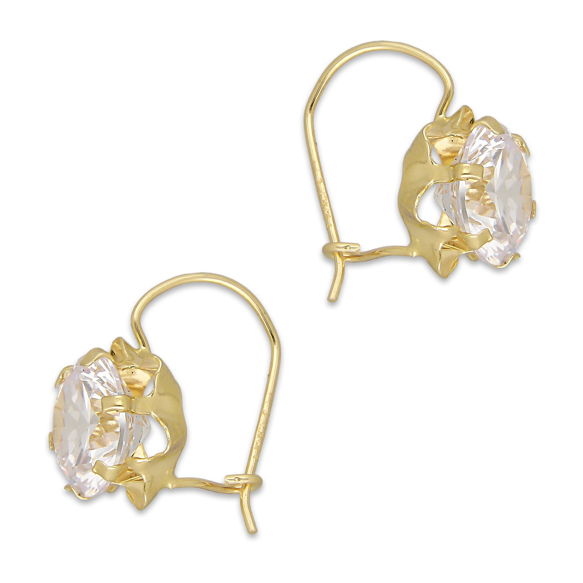 LPEAR004 Arete Arillo Oro Sólido 10K Modelo Zirconia Blanca 9 mm Redonda Base Flor 4286560976
