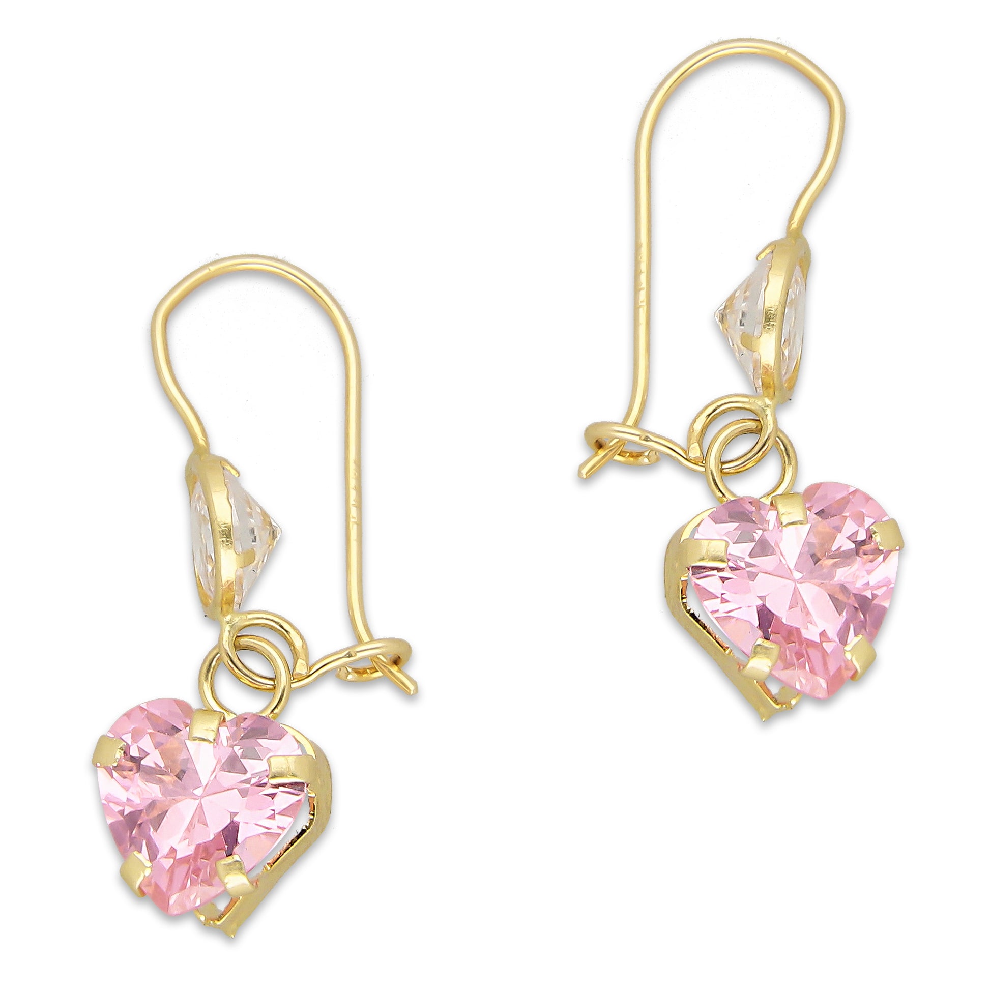 LPEAR006 Arete Arillo Oro Sólido 10K Modelo Corazón de Zirconia Rosa Colgante 2531074521