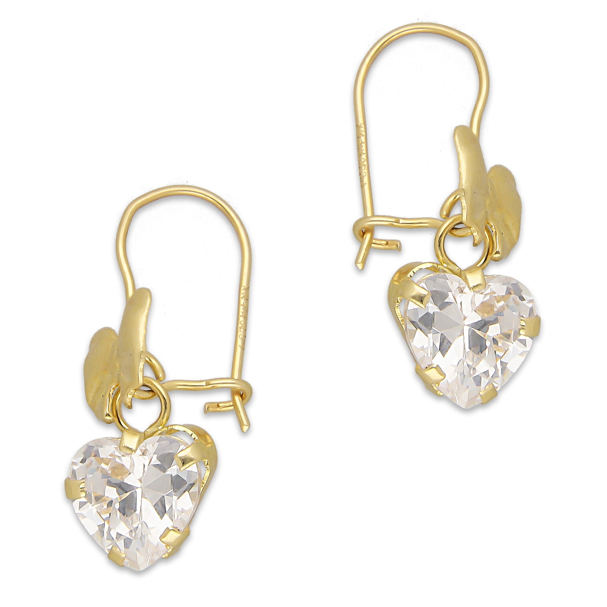 LPEAR013 Arete Arillo Oro Sólido 10K Modelo Moñito Troquelado con Zirconia Blanca Corazón Colgante 2531048877