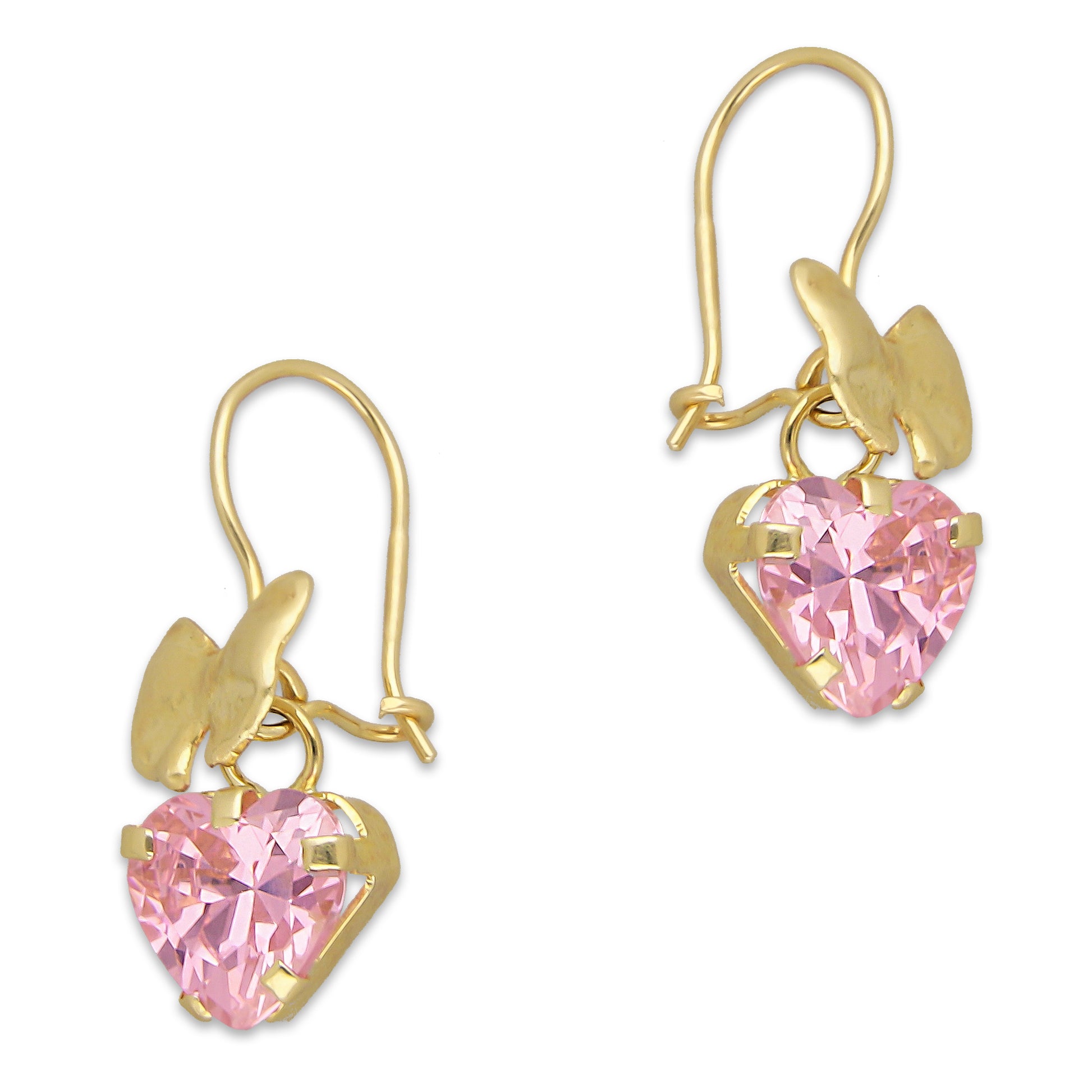 LPEAR014 Arete Arillo Oro Sólido 10K Modelo Moñito Troquelado con Zirconia Rosa Corazón Colgante 2530984169