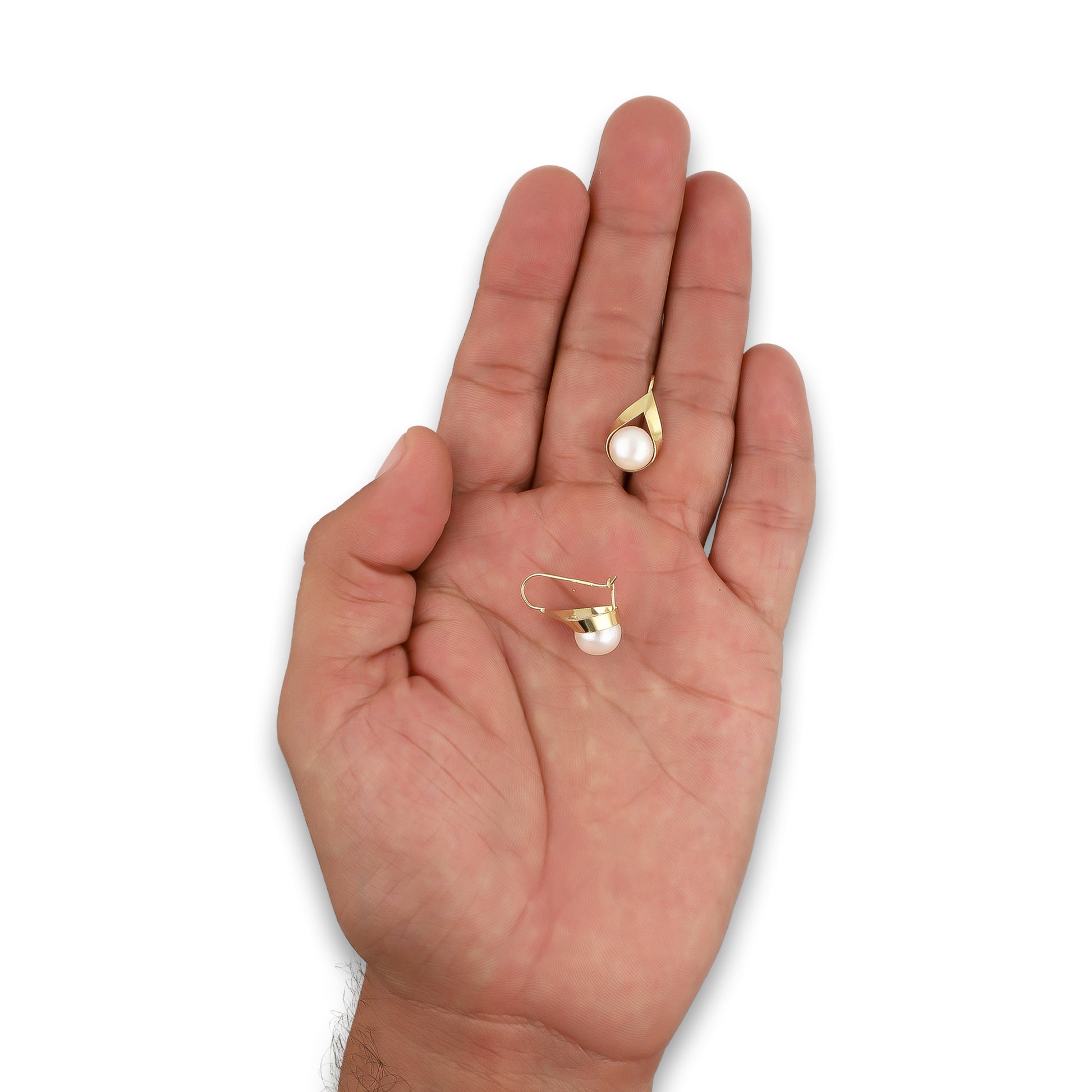 LPEAR015 Arete Arillo Oro Sólido 10K Modelo Gota Lisa con Perla 8 mm 2531187859