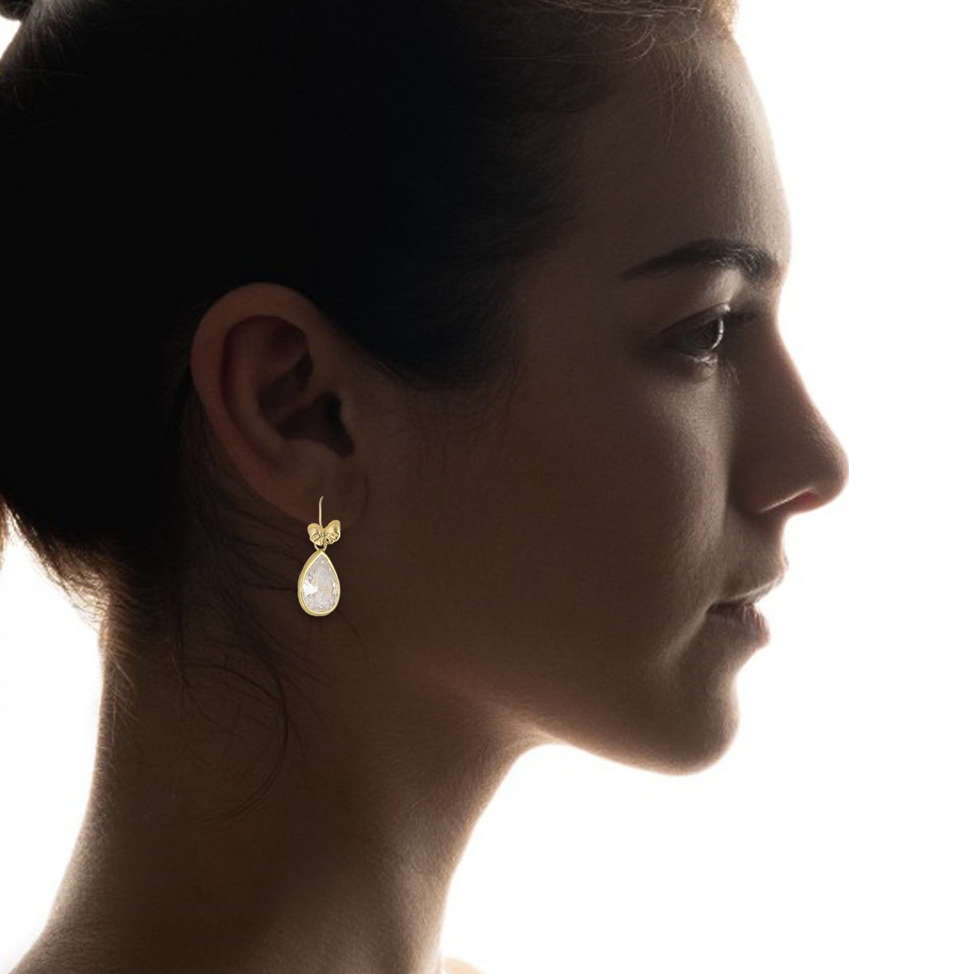 LPEAR017 Arete Arillo Oro Sólido 10K Modelo Moñito Troquelado con Gota de Zirconia Blanca Colgante 2530958523
