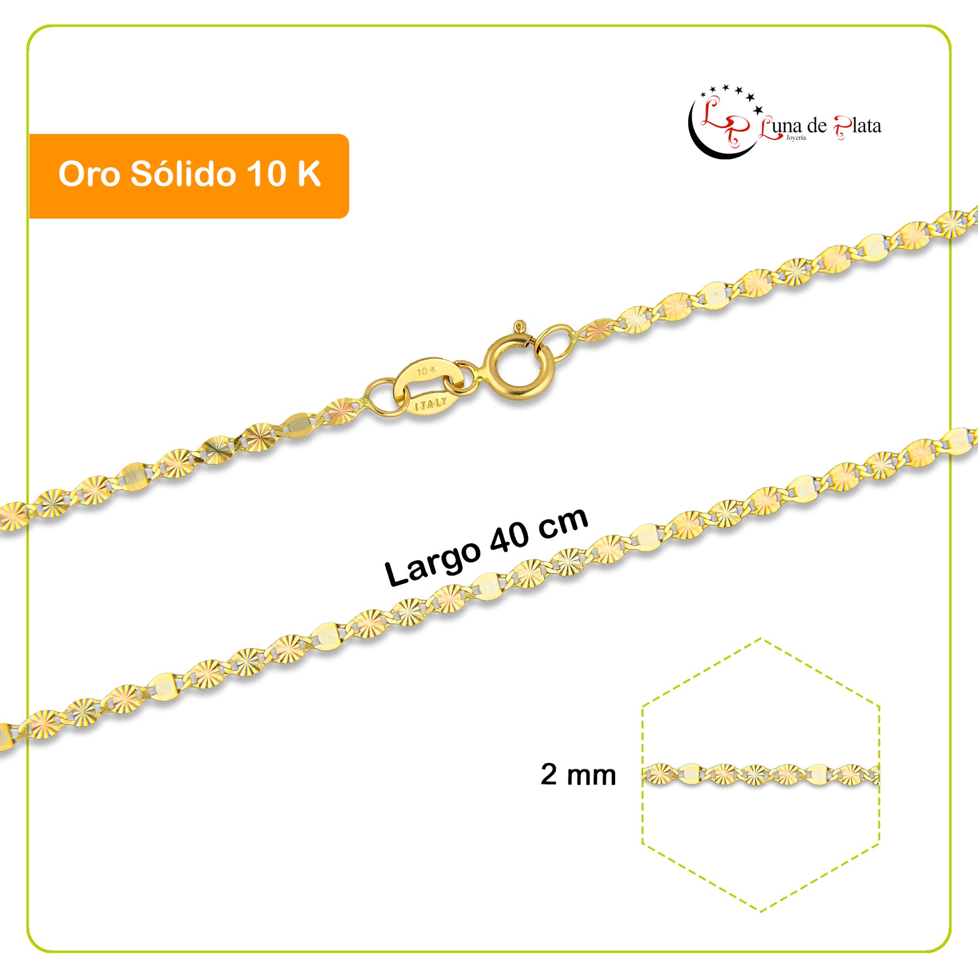 LPECU004-40 Cadena Oro Sólido 10K Florentino Mod Ancla Óvalo Diamantada 3x1 2 mm x 40 cm 4287536434