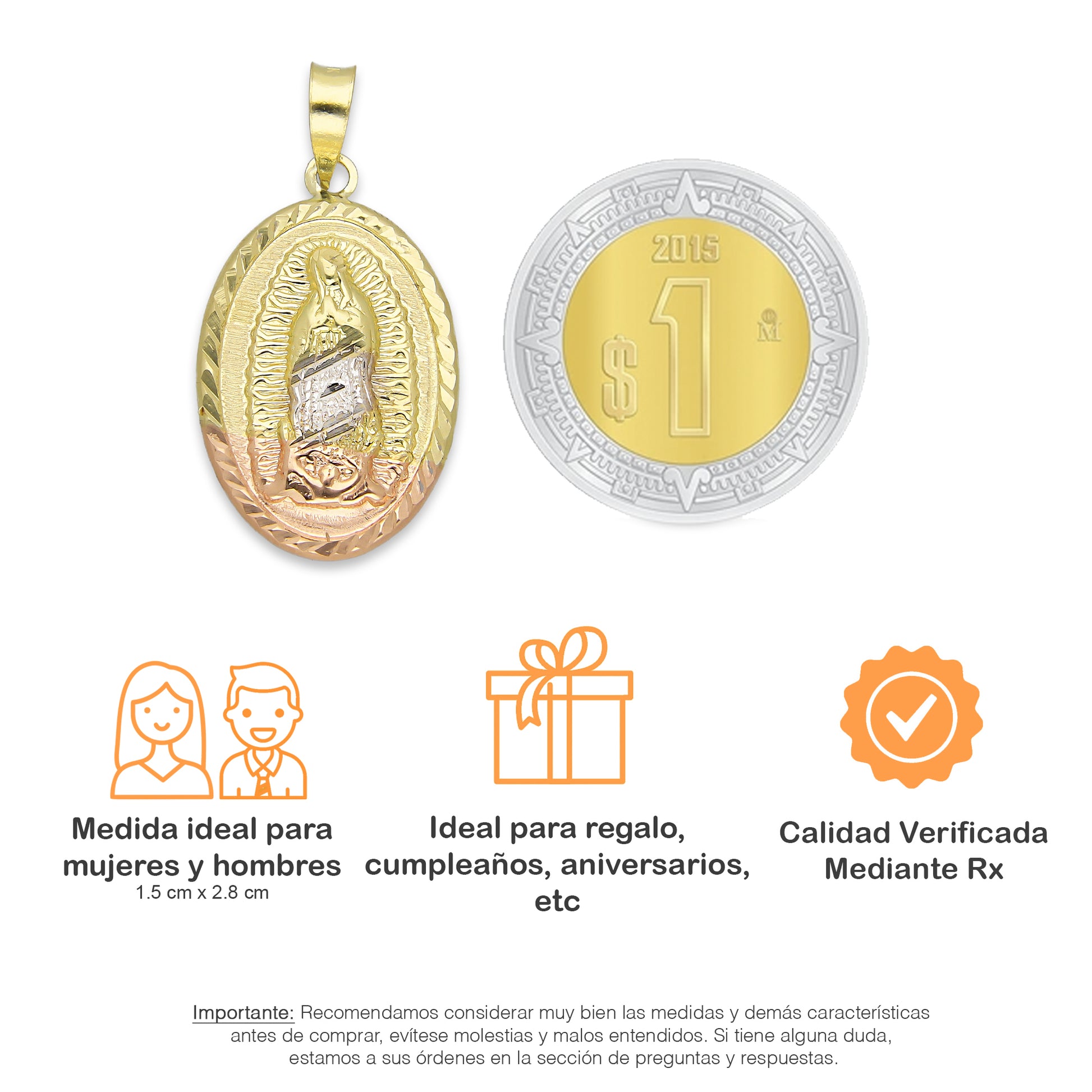 LPEDJ001 Dije Medalla Oval Troquelada Oro Sólido 14K Florentino Virgen de Guadalupe 1.5 cm x 2.8 cm 4287938864