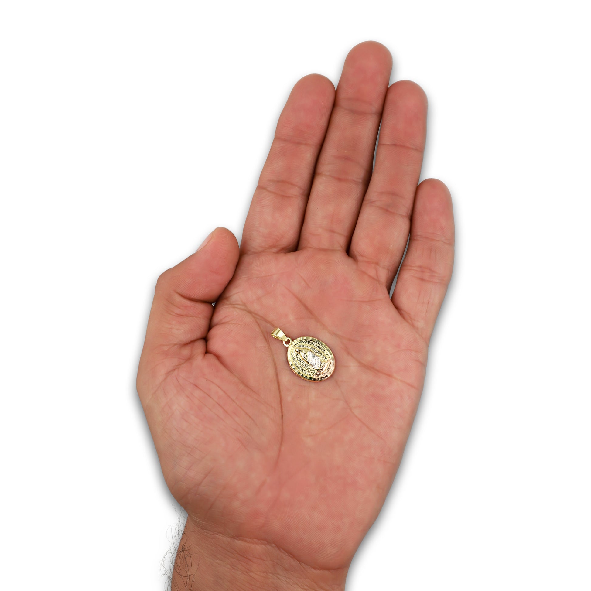 LPEDJ002 Dije Medalla Oval Troquelada Oro Sólido 14K Florentino Virgen de Guadalupe 1.3 cm x 2.4 cm 4287925954