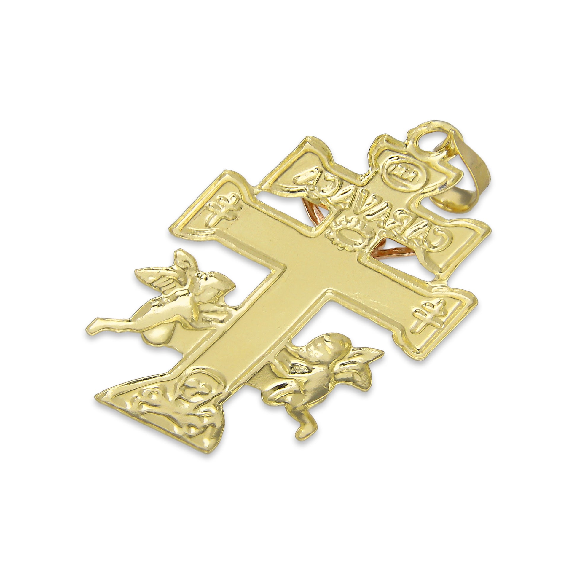 LPEDJ007 Dije Troquelado Oro Sólido 14K Florentino Crucifijo Cruz Caravaca 2.3 cm x 4 cm 4287471628