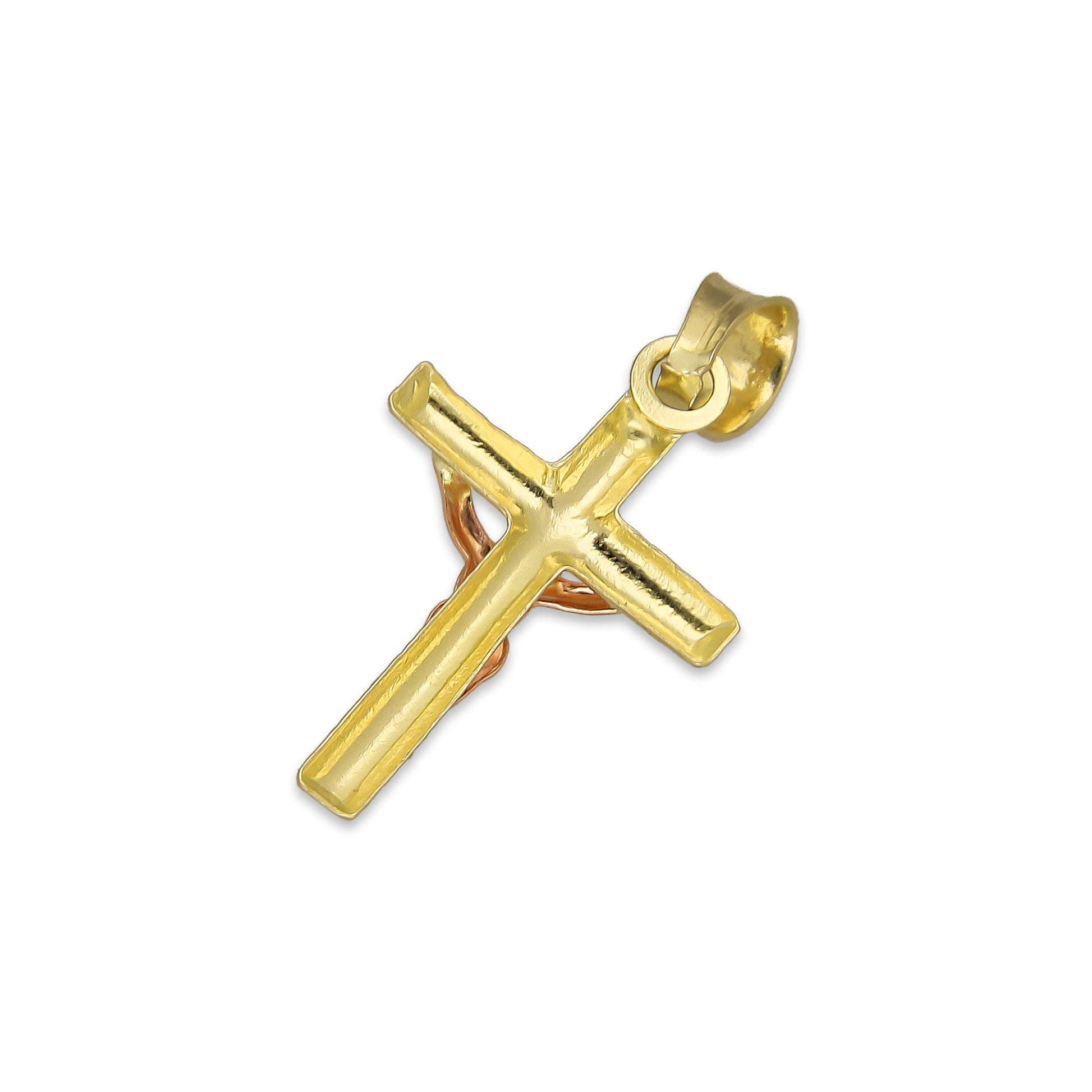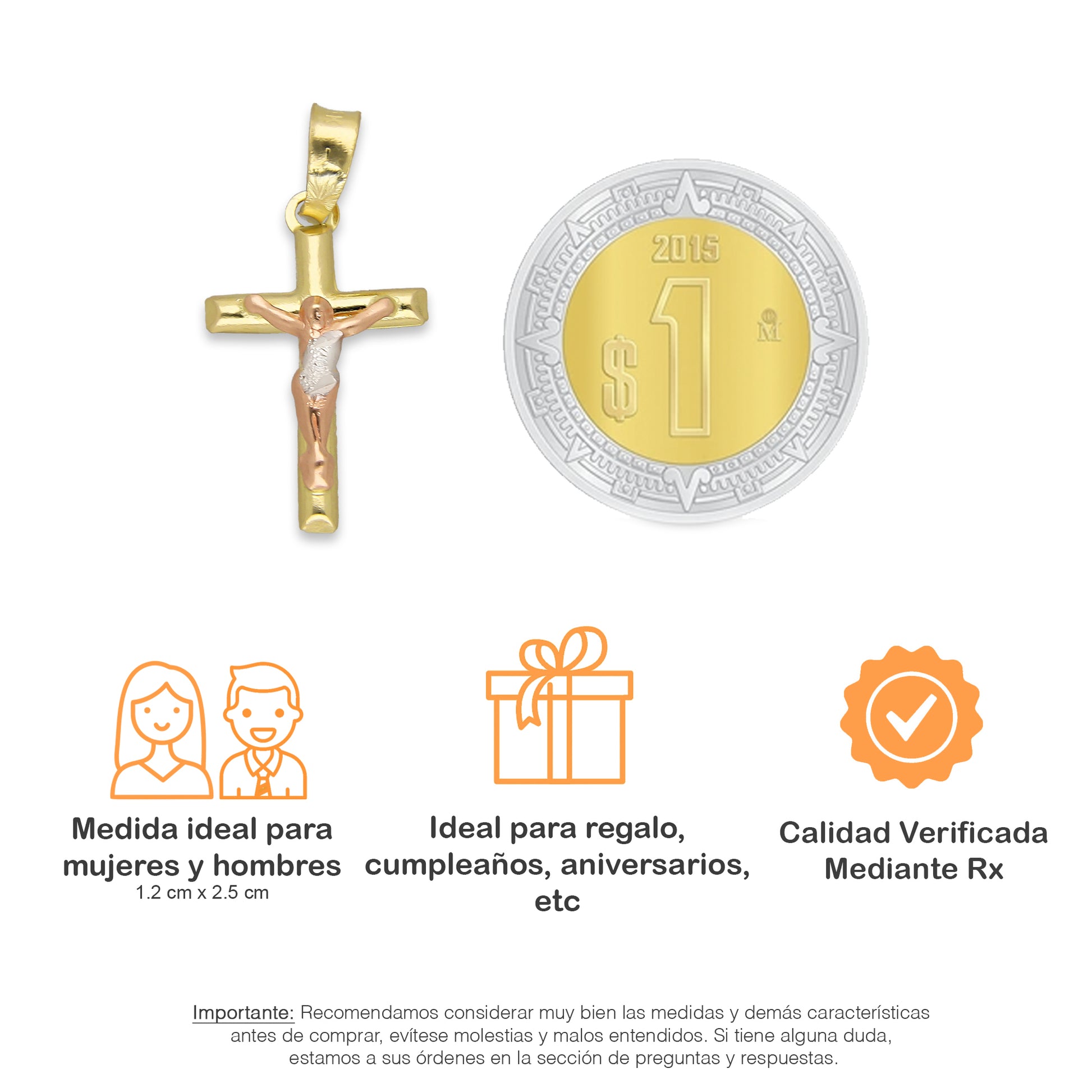 LPEDJ011 Dije Troquelado Oro Sólido 14K Florentino Crucifijo Cruz Media Caña con Cristo 1.2 cm x 2.5 cm 4287484550