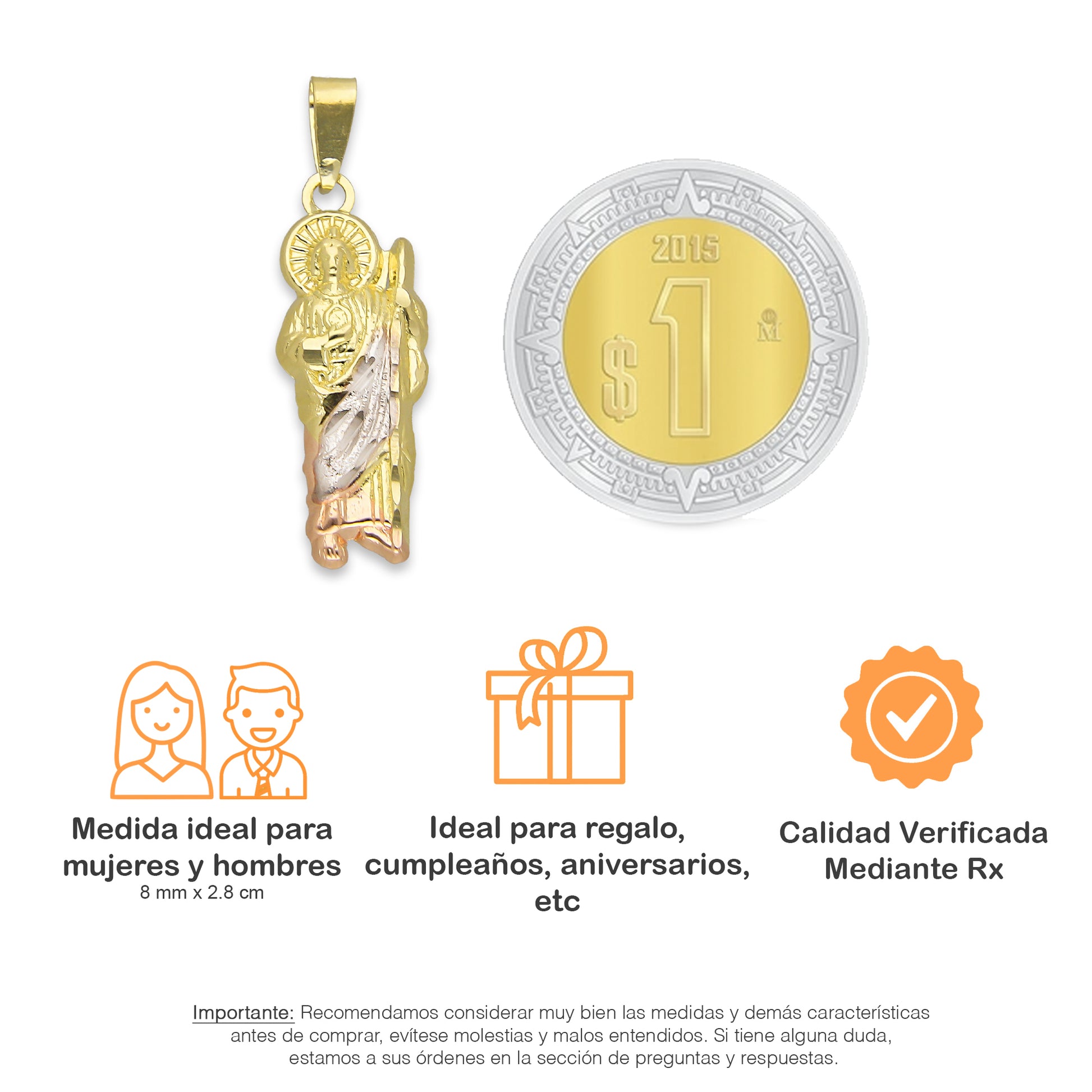 LPEDJ017 Dije Troquelado Oro Sólido 14K Florentino San Judas Tadeo 8 mm x 2.8 cm 4287874226
