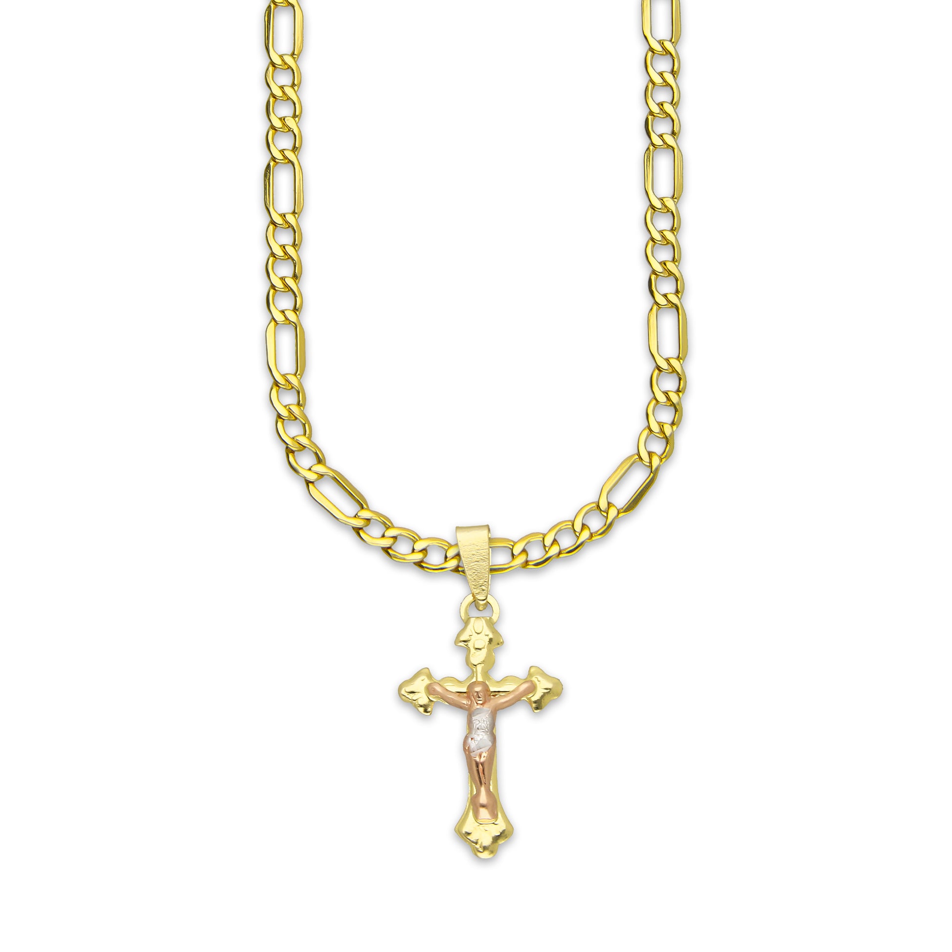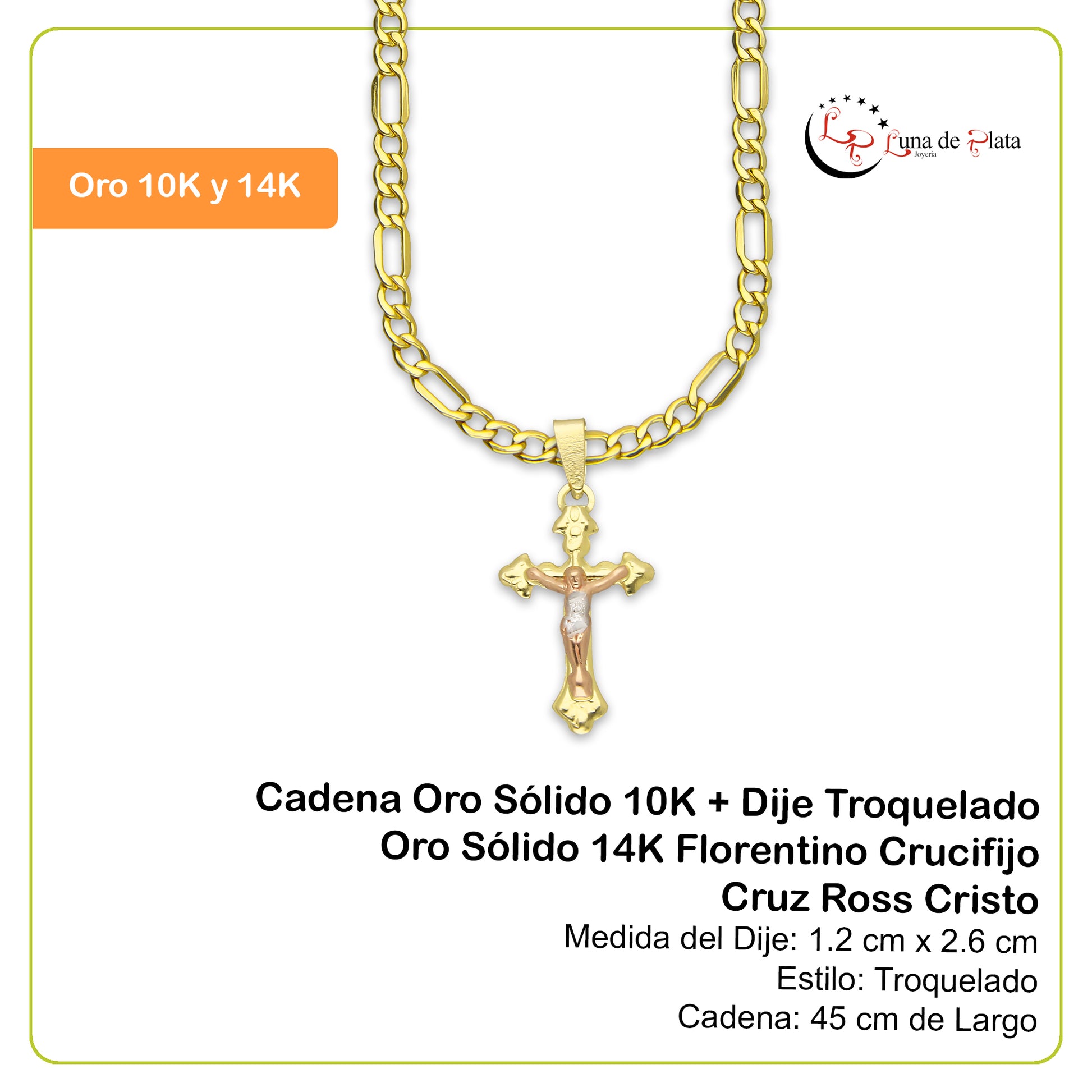 LPEDP013 Cadena Oro Sólido 10K + Dije Troquelado Oro Sólido 14K Florentino Crucifijo Cruz Ross Cristo 1.2 cm x 2.6 cm 4293749928