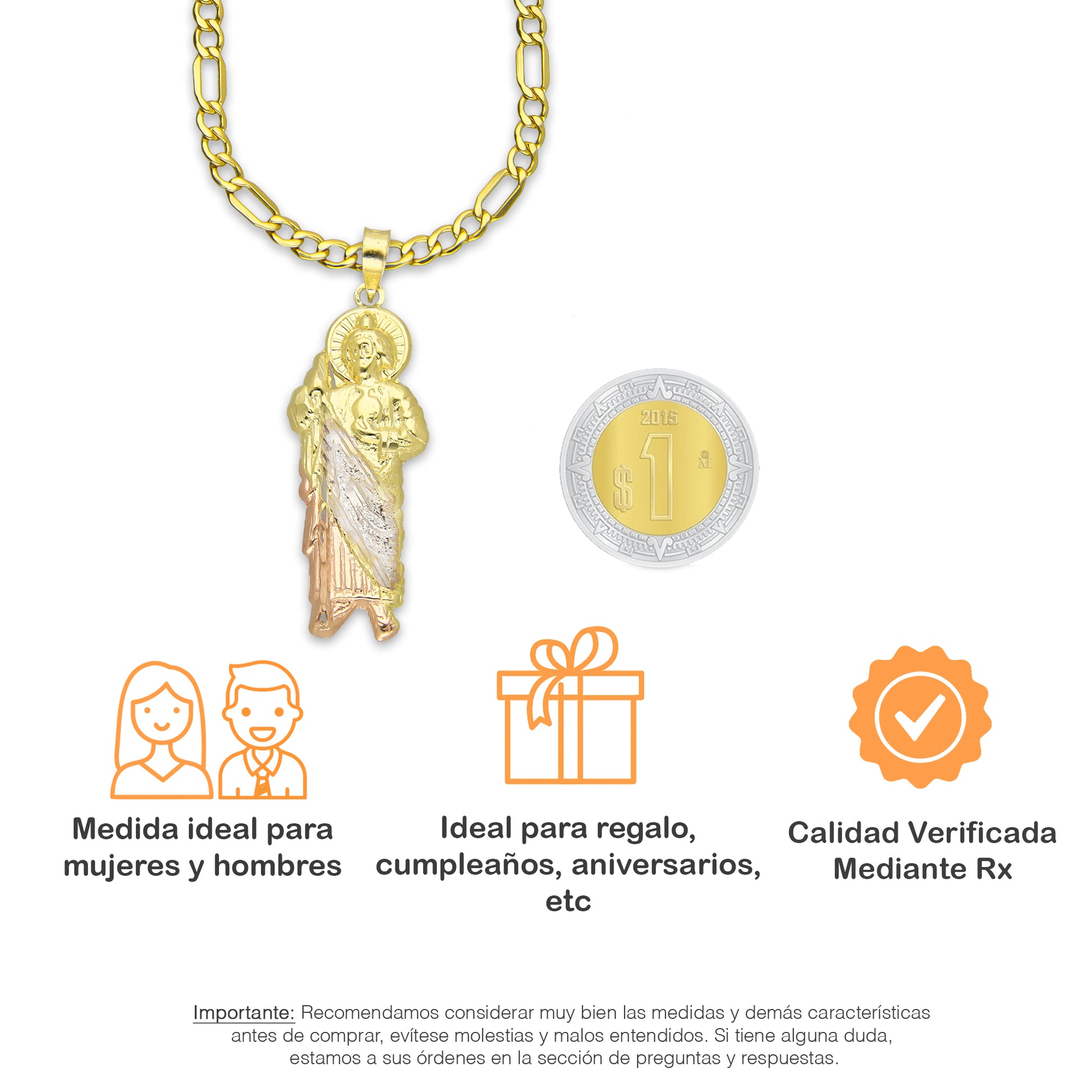 LPEDP014 Cadena Oro Sólido 10K + Dije Troquelado Oro Sólido 14K Florentino San Judas Tadeo 1.4 cm x 4.1 cm 4293555788