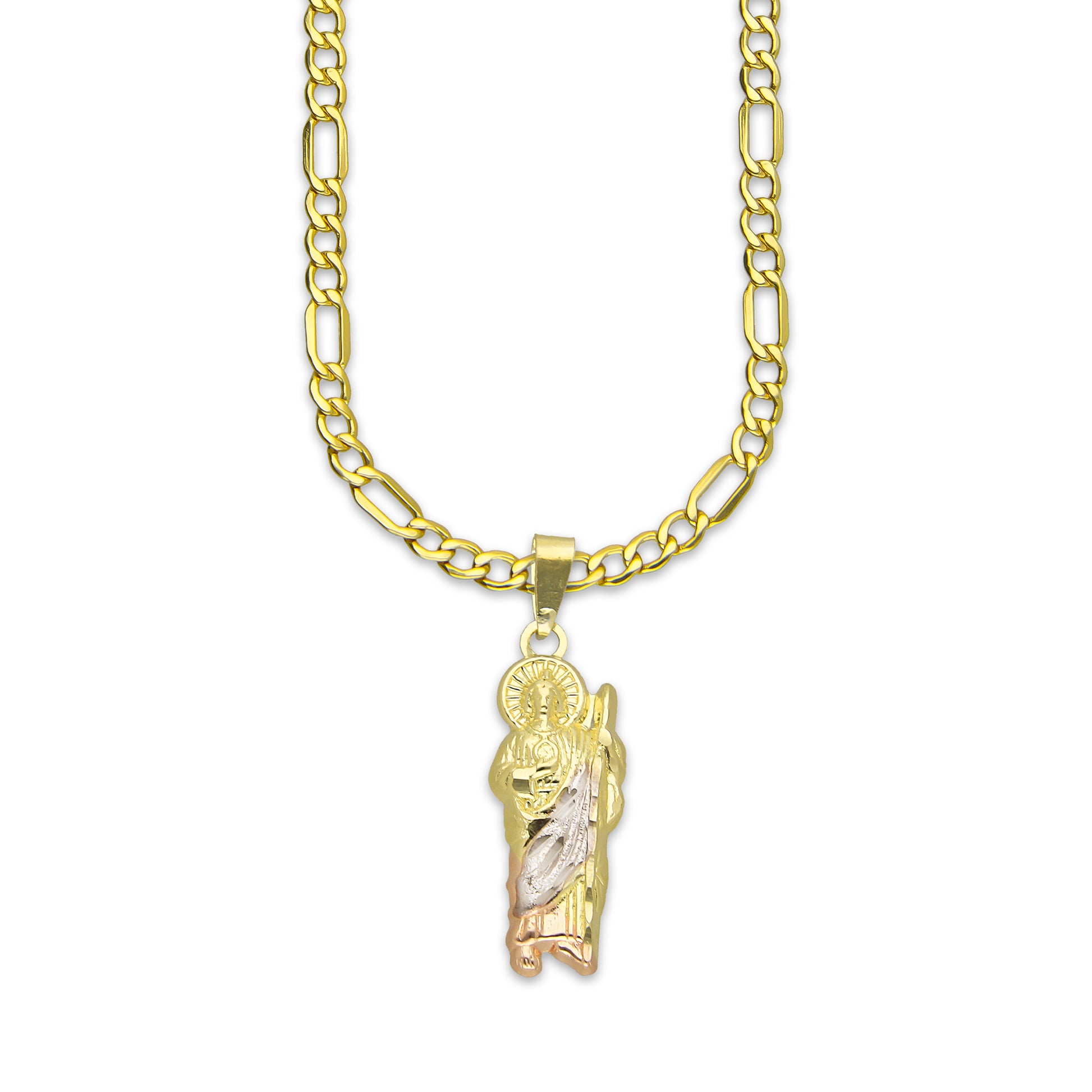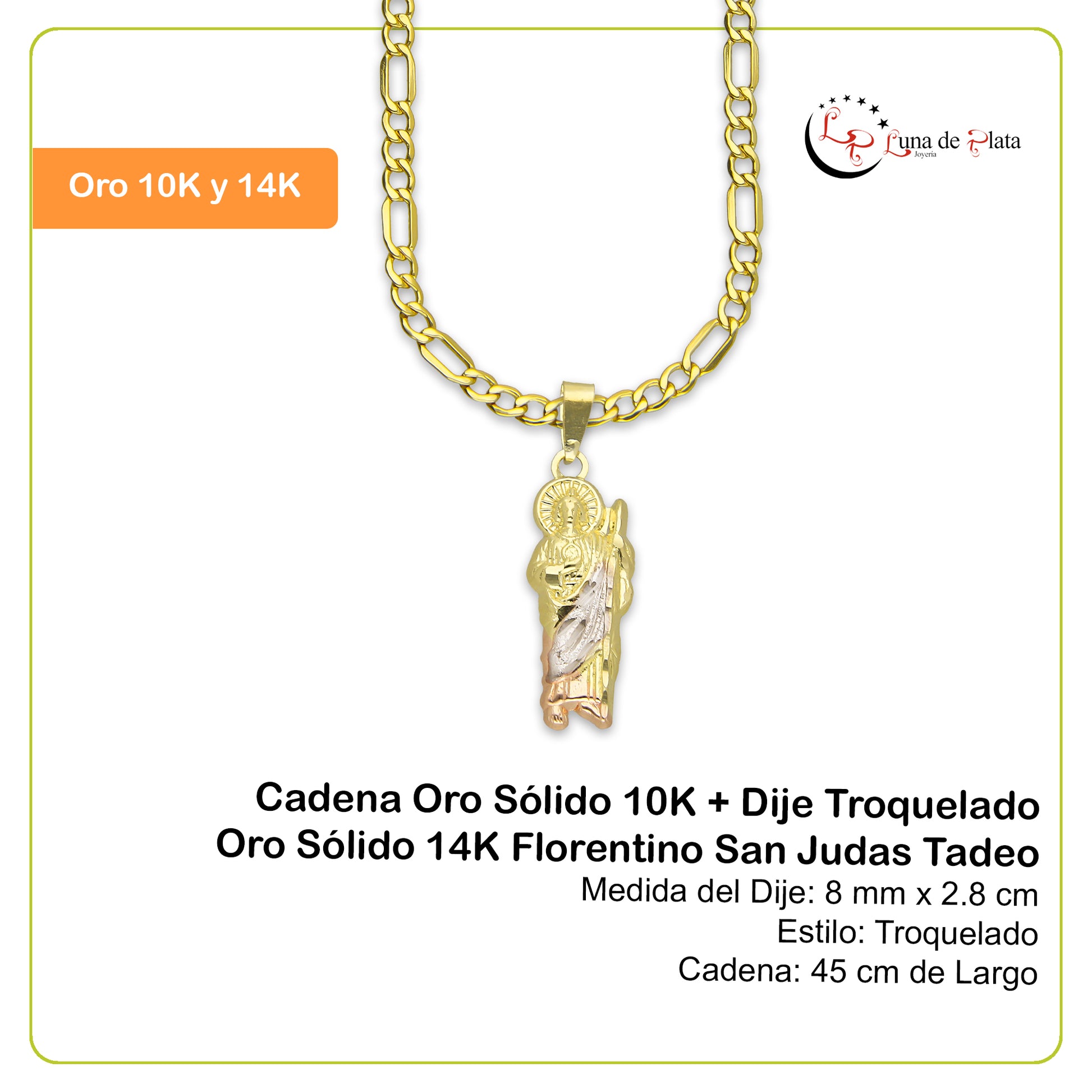 LPEDP017 Cadena Oro Sólido 10K + Dije Troquelado Oro Sólido 14K Florentino San Judas Tadeo 8 mm x 2.8 cm 4293581802