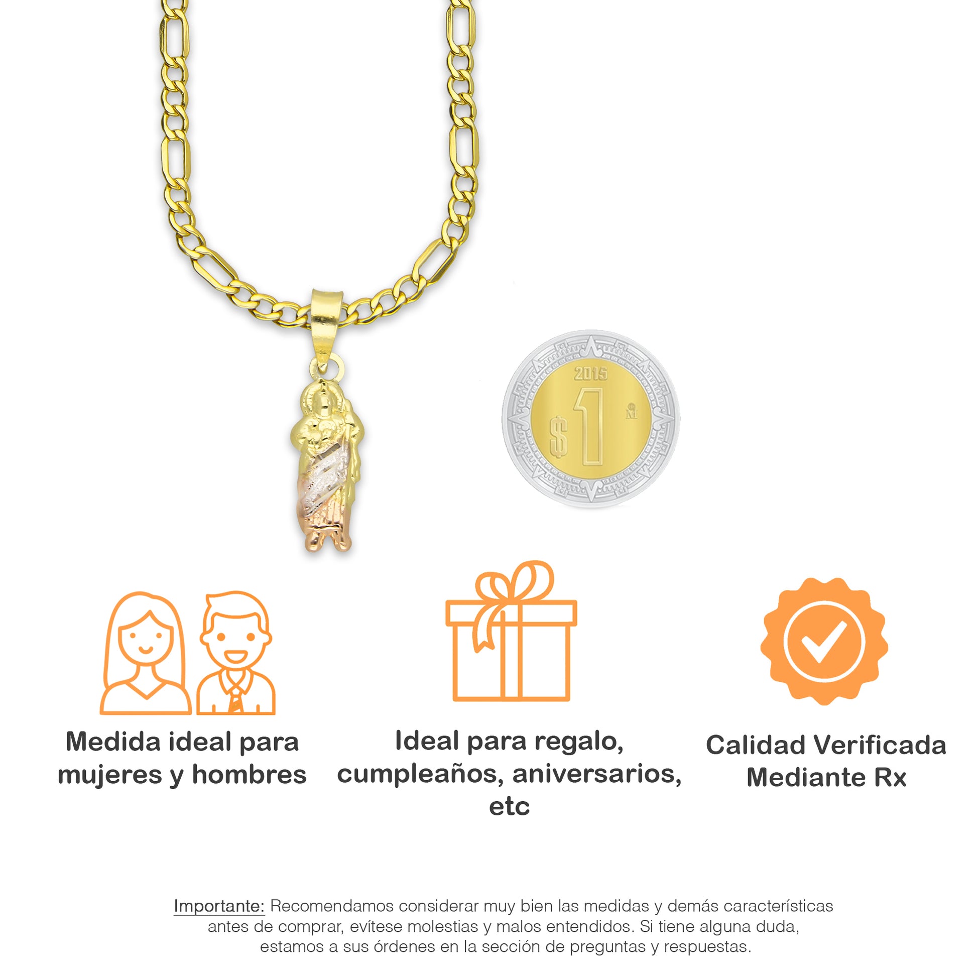 LPEDP018 Cadena Oro Sólido 10K + Dije Troquelado Oro Sólido 14K Florentino San Judas Tadeo 6 mm x 2.3 cm 4293711208