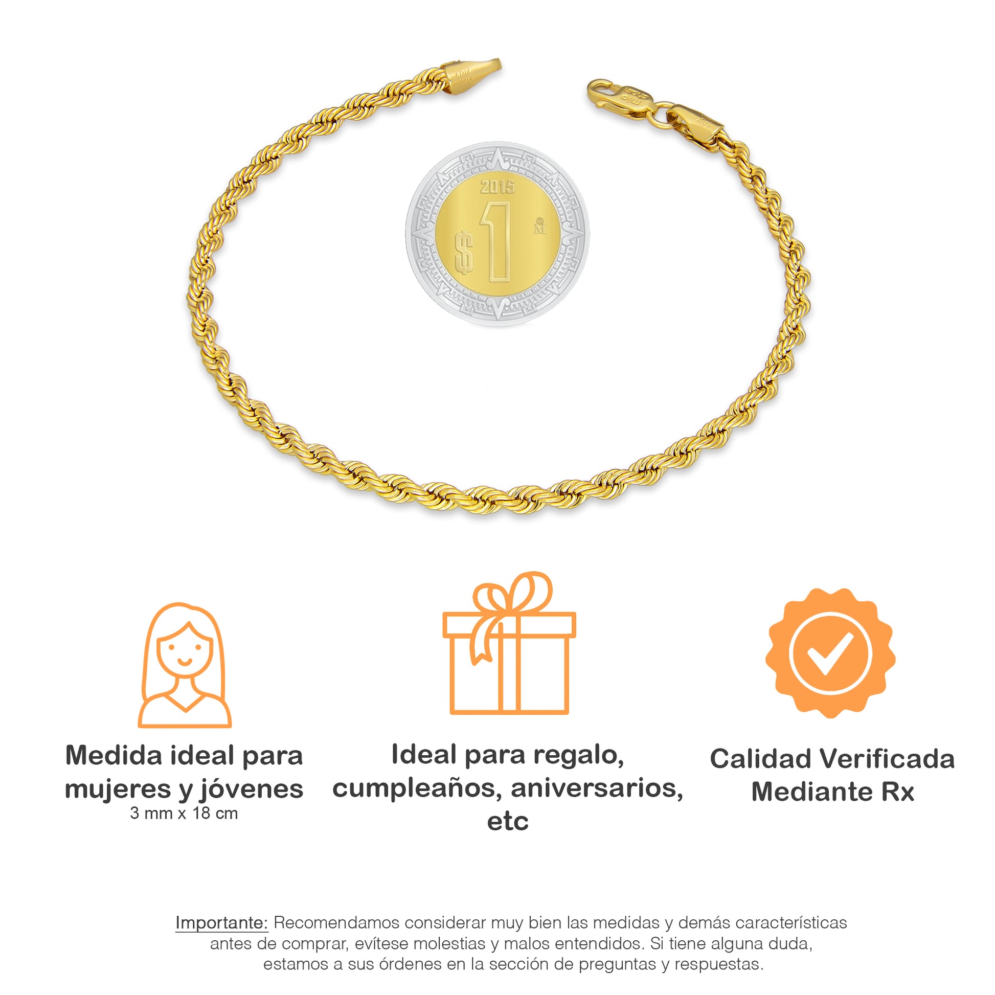 LPEPD005 Pulsera para Dama Oro Sólido 10K Mod Torsal Lisa Súper Ligera 3 mm x 18 cm 4287535642