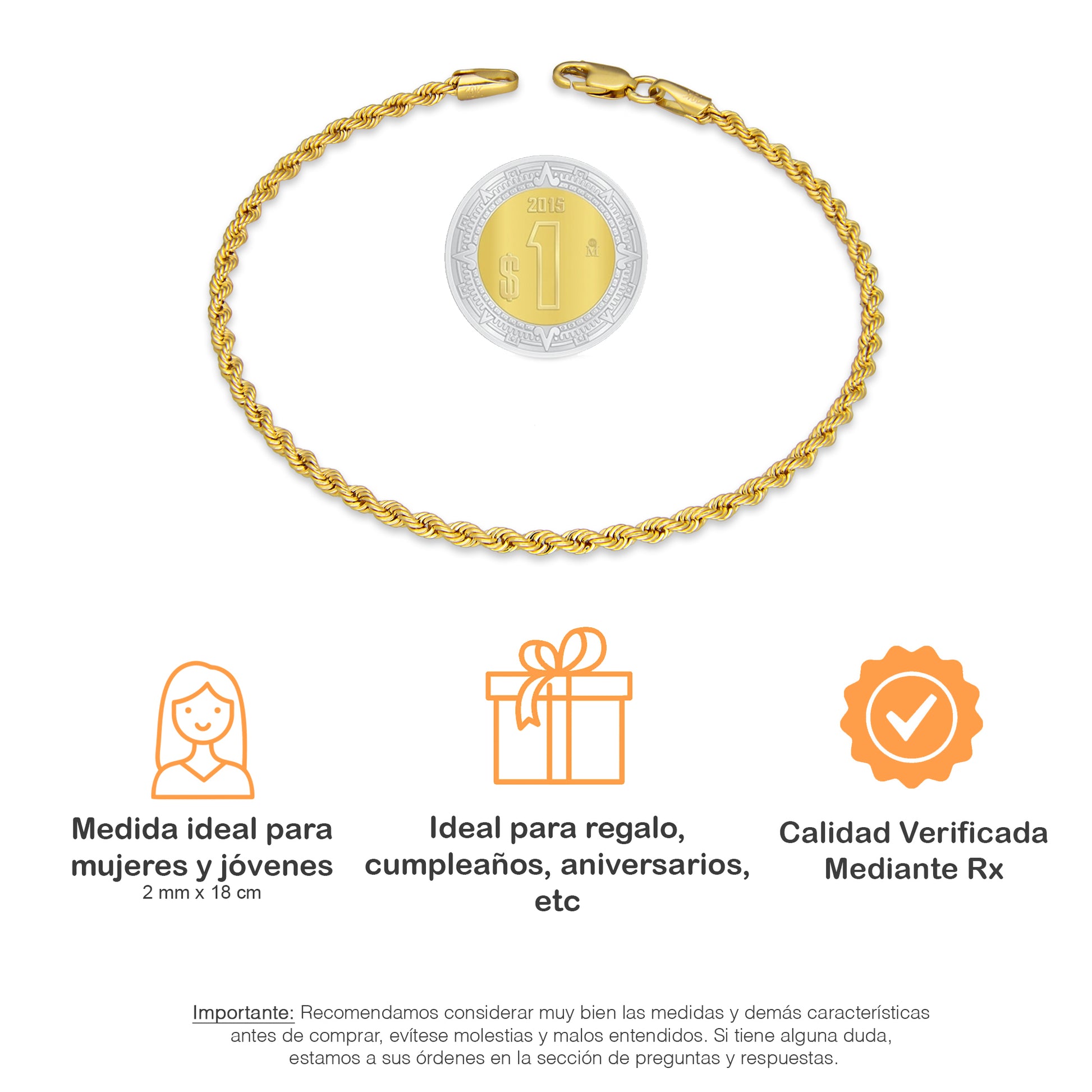 LPEPD006 Pulsera para Dama Oro Sólido 10K Mod Torsal Lisa Súper Ligera 2 mm x 18 cm 4287483716