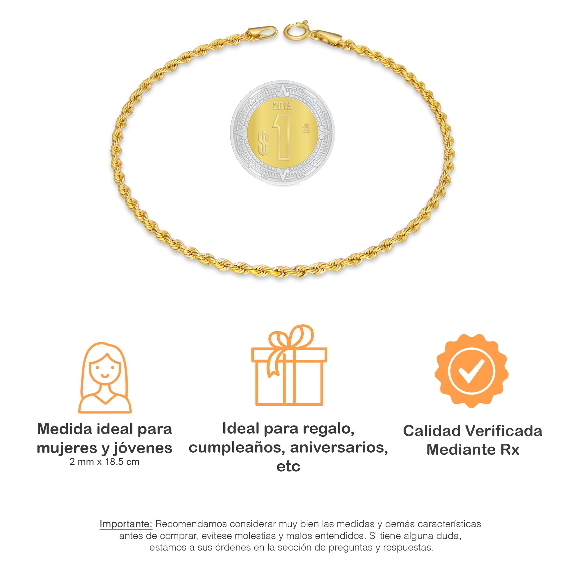 LPEPD007 Pulsera para Dama Oro Sólido 10K Mod Torsal Lisa Súper Ligera 2 mm x 18.5 cm 4287743068