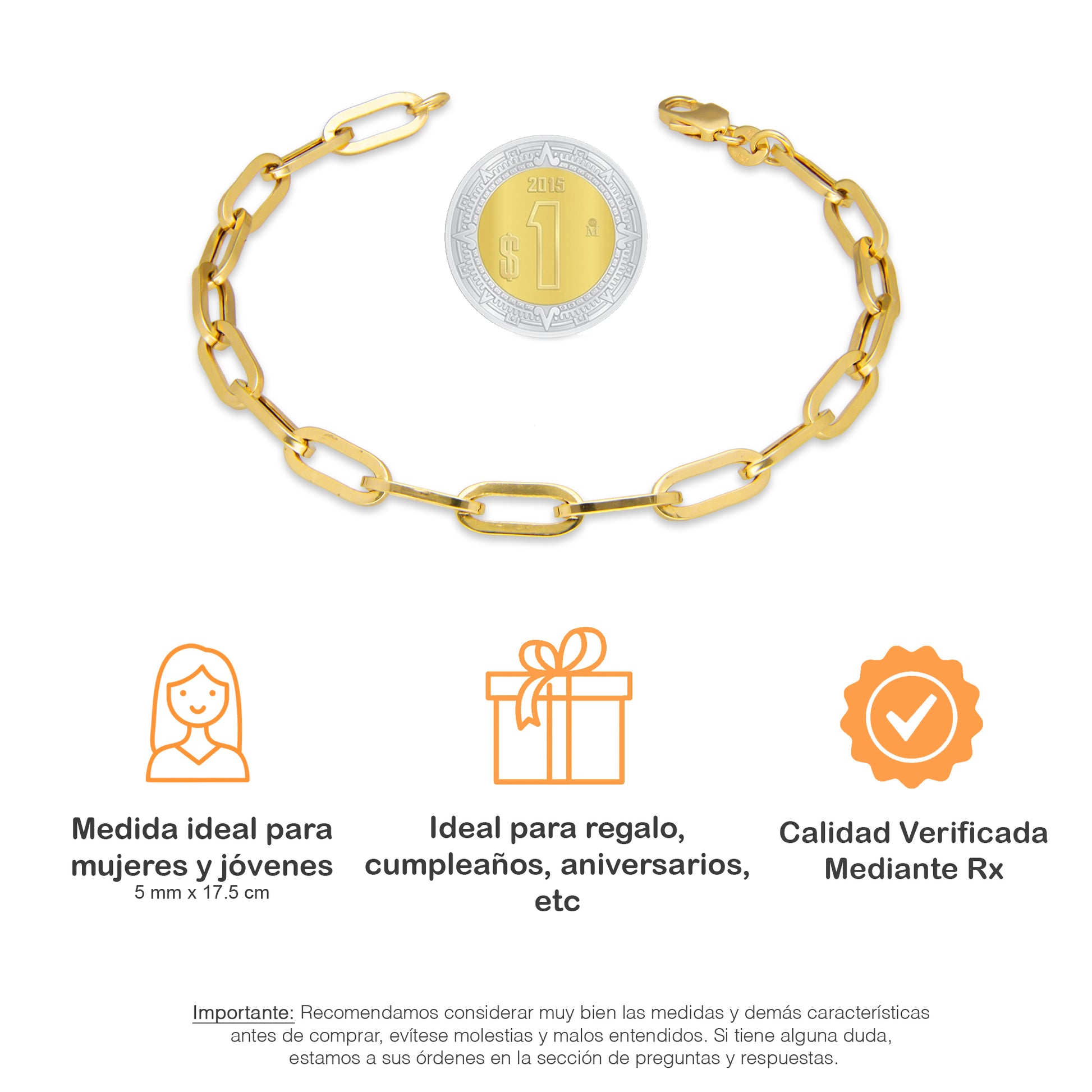 LPEPD011 Pulsera para Dama Oro Sólido 10K Mod Clip Súper Ligera 5 mm x 17.5 cm 4286630458