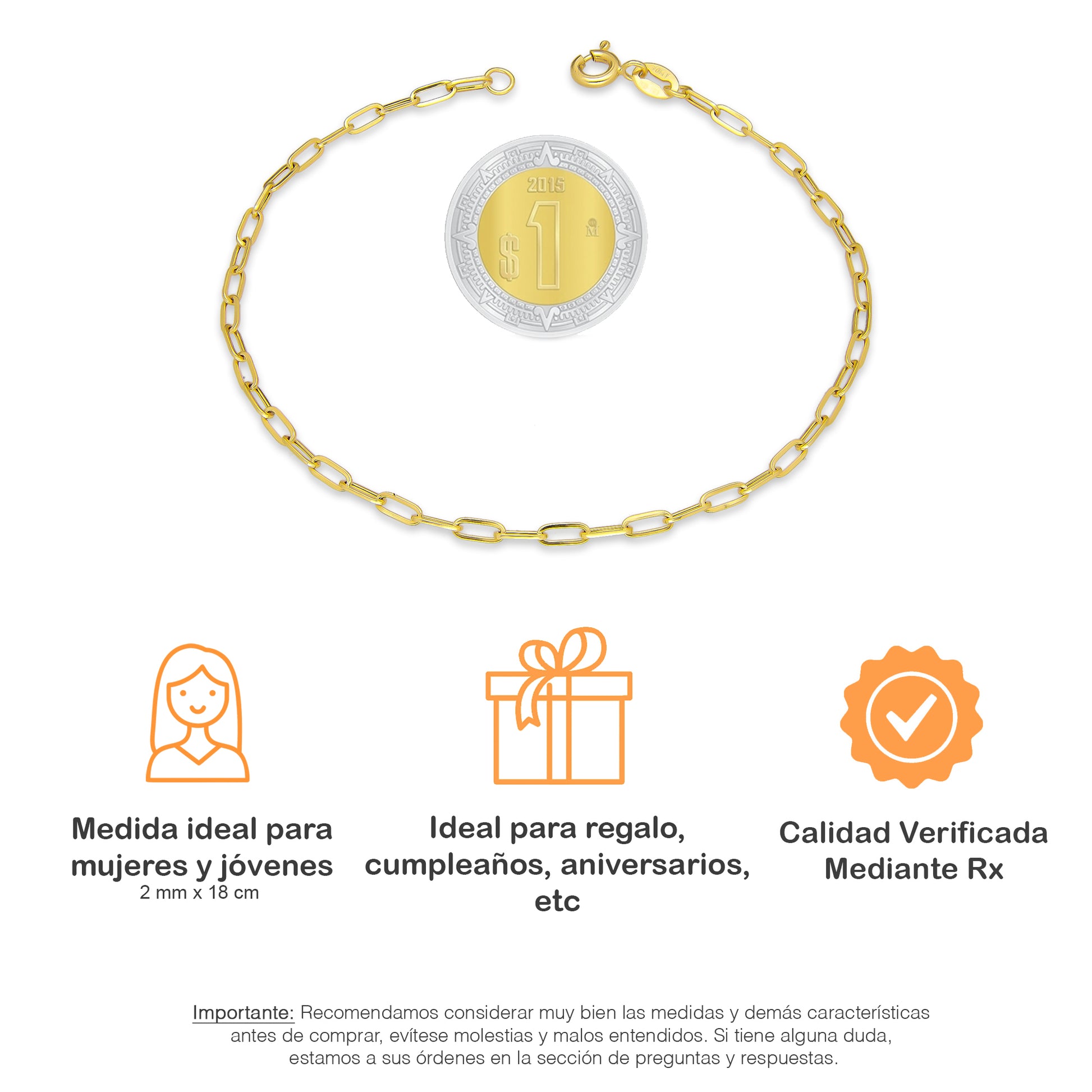 LPEPD012 Pulsera para Dama Oro Sólido 10K Mod Clip Corto Súper Ligera 2 mm x 18 cm 4287912368
