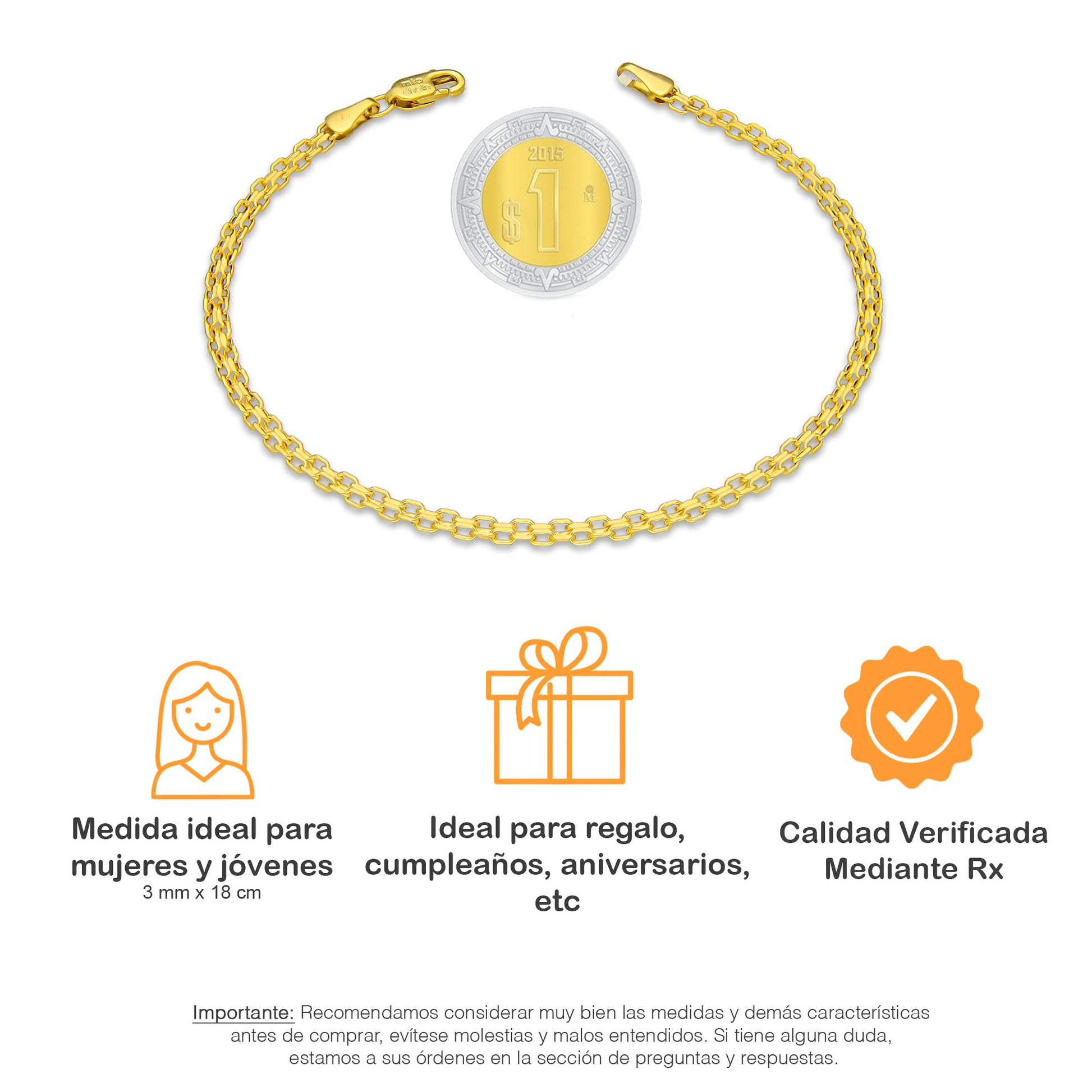 LPEPD014 Pulsera para Dama Oro Sólido 10K Mod Bizmark Súper Ligera 3 mm x 18 cm 2531143981