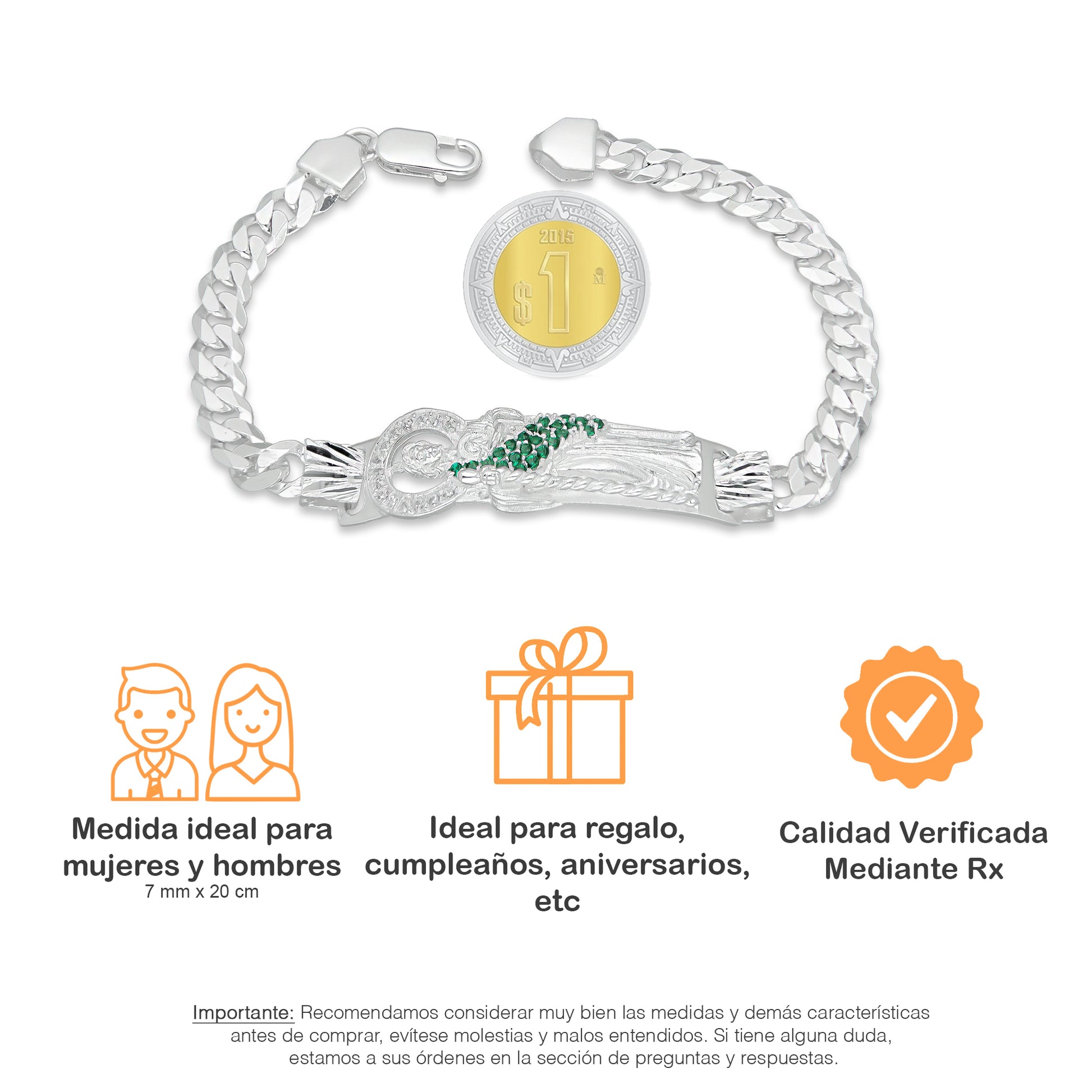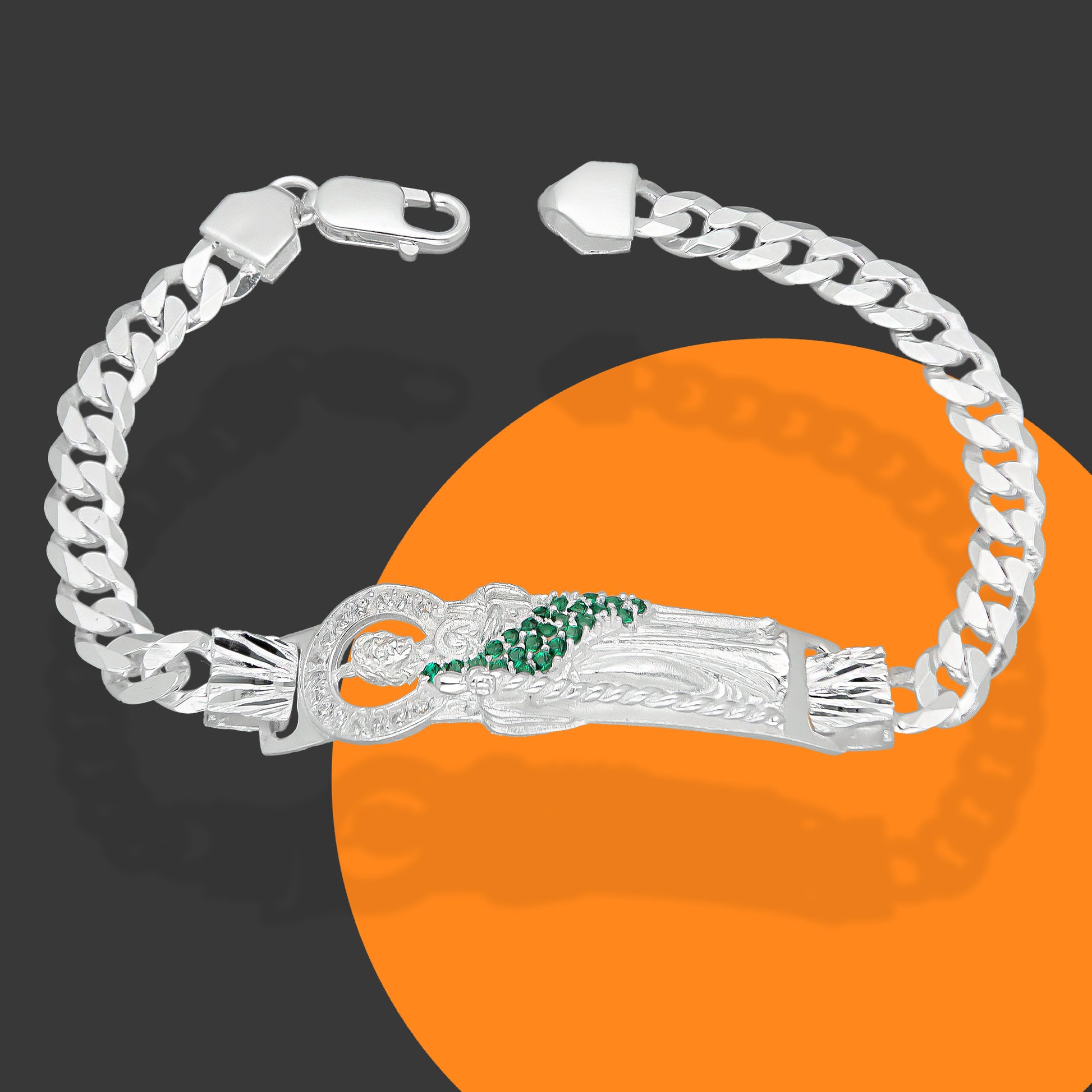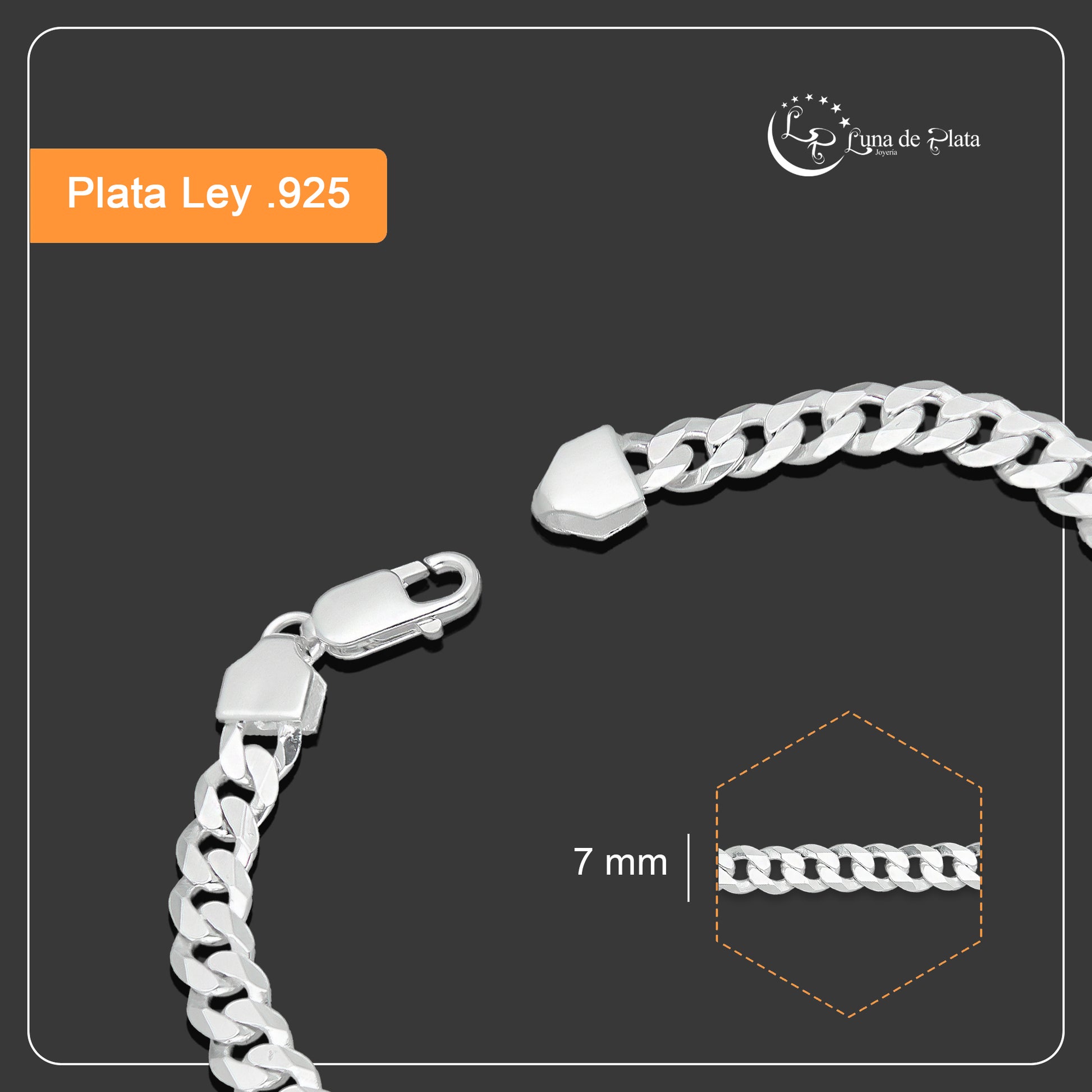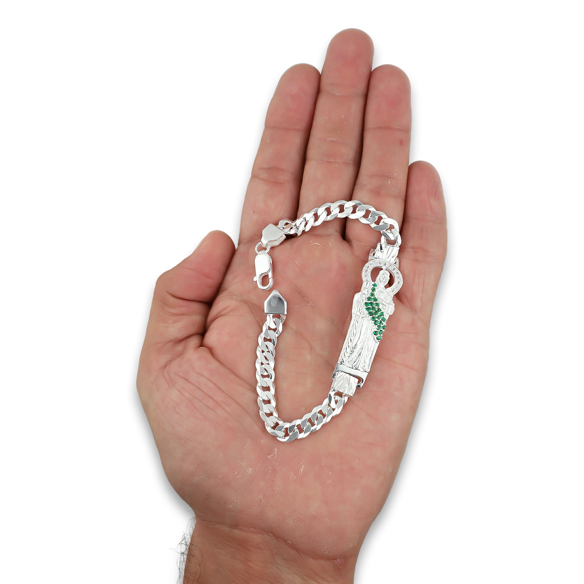 LPPC087-20 Pulsera Esclava San Judas Con Eslabones Cubano Americano 7 mm x 20 cm en Plata .925