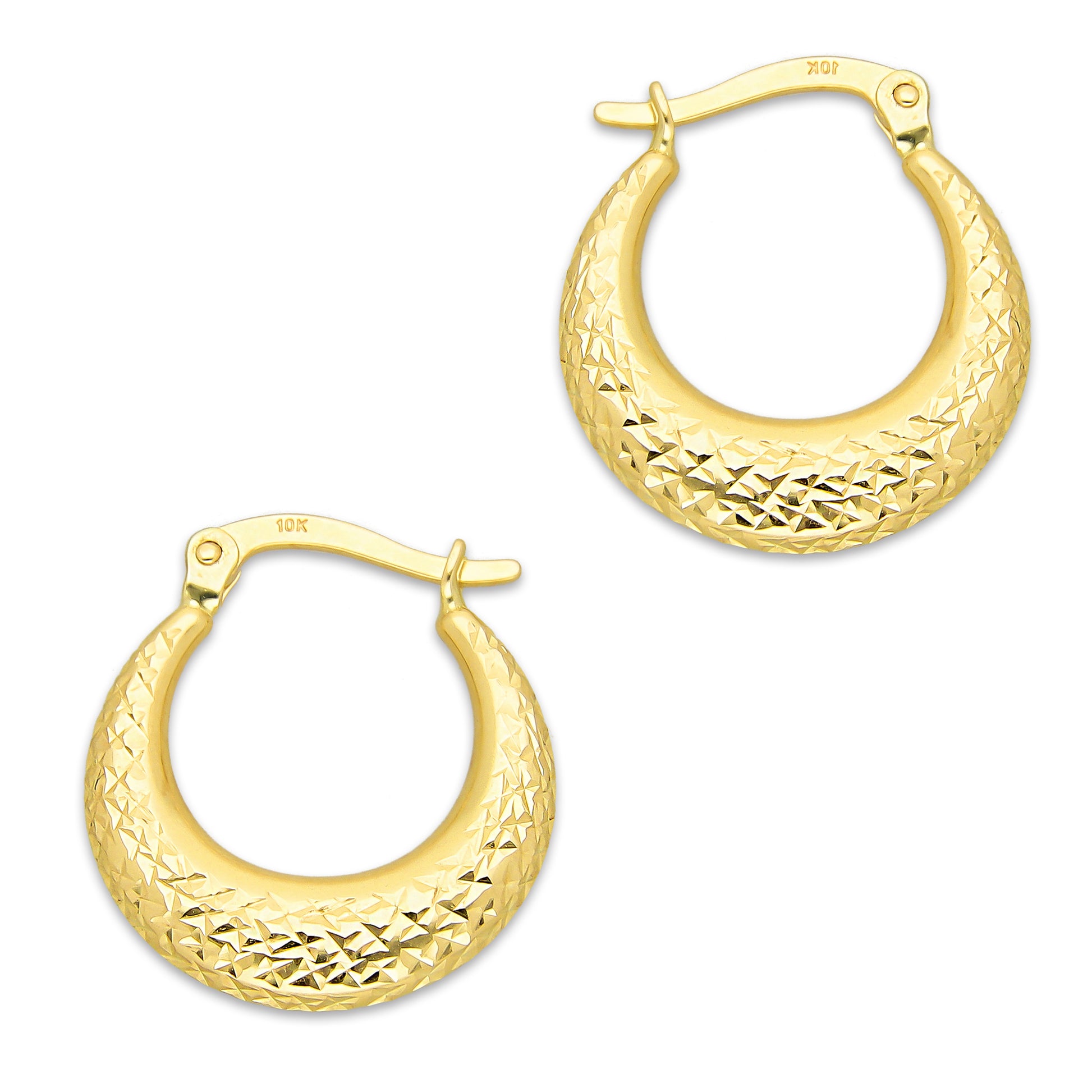 MR10AR034 Arete Arracada Oro Sólido 10K EMF10 Modelo Canasta Texturizada Diámetro 1.7 cm