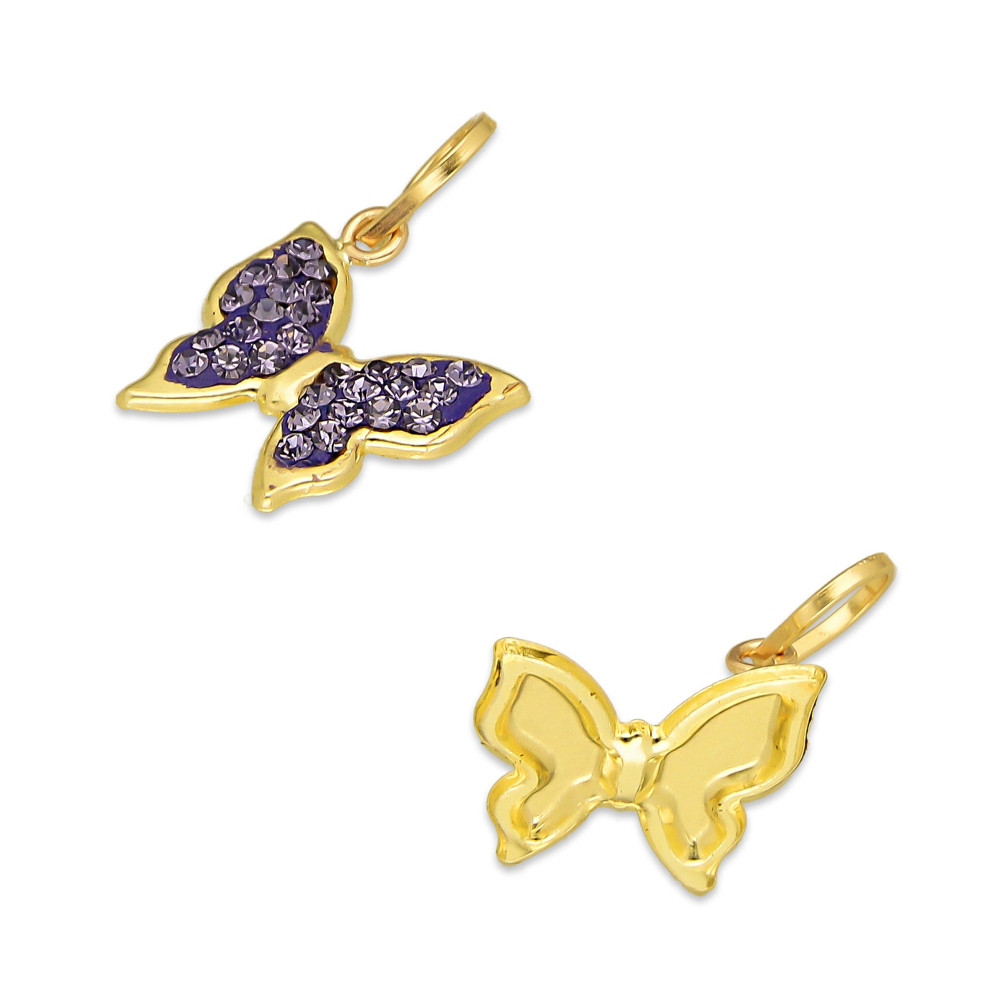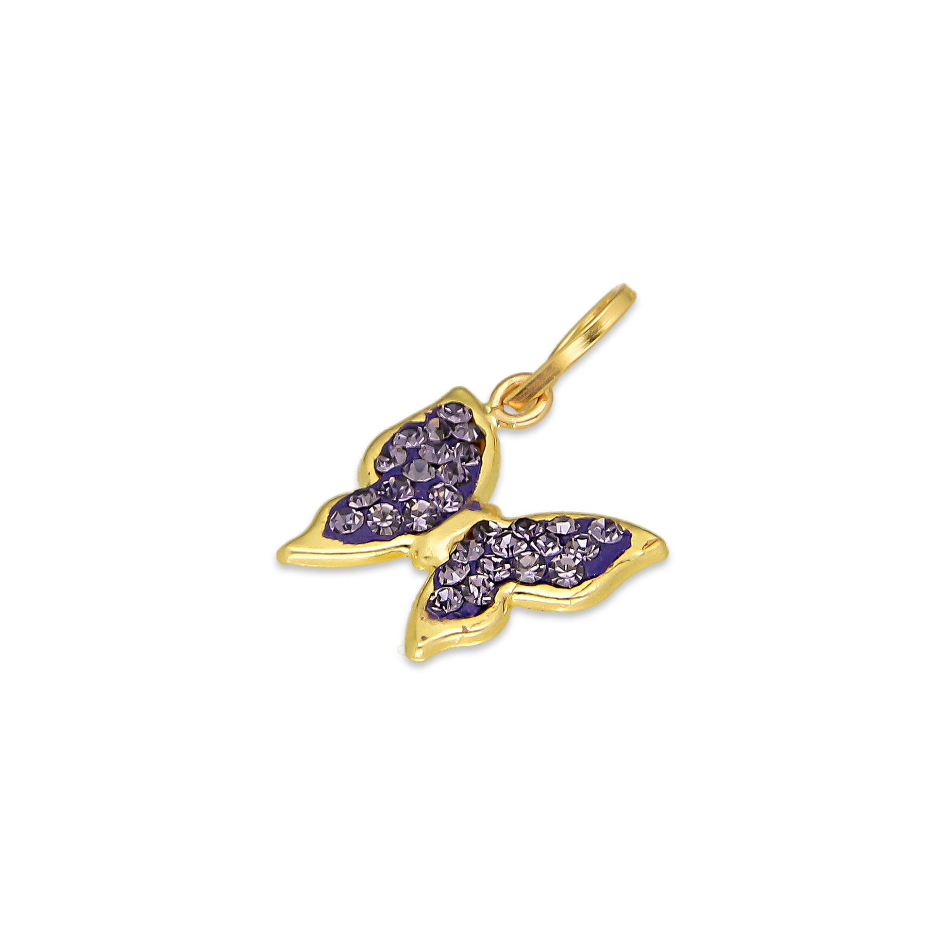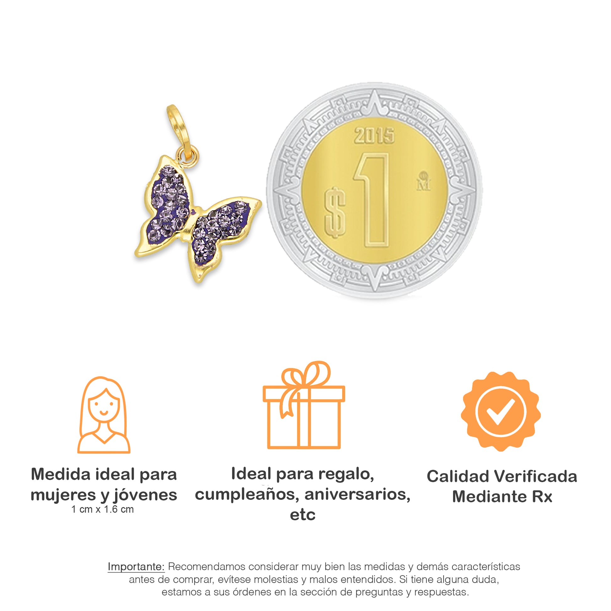 MR10DJ207 Dije Oro Sólido 10K EM Mariposa Cristalitos Morado 1 cm x 1.6 cm