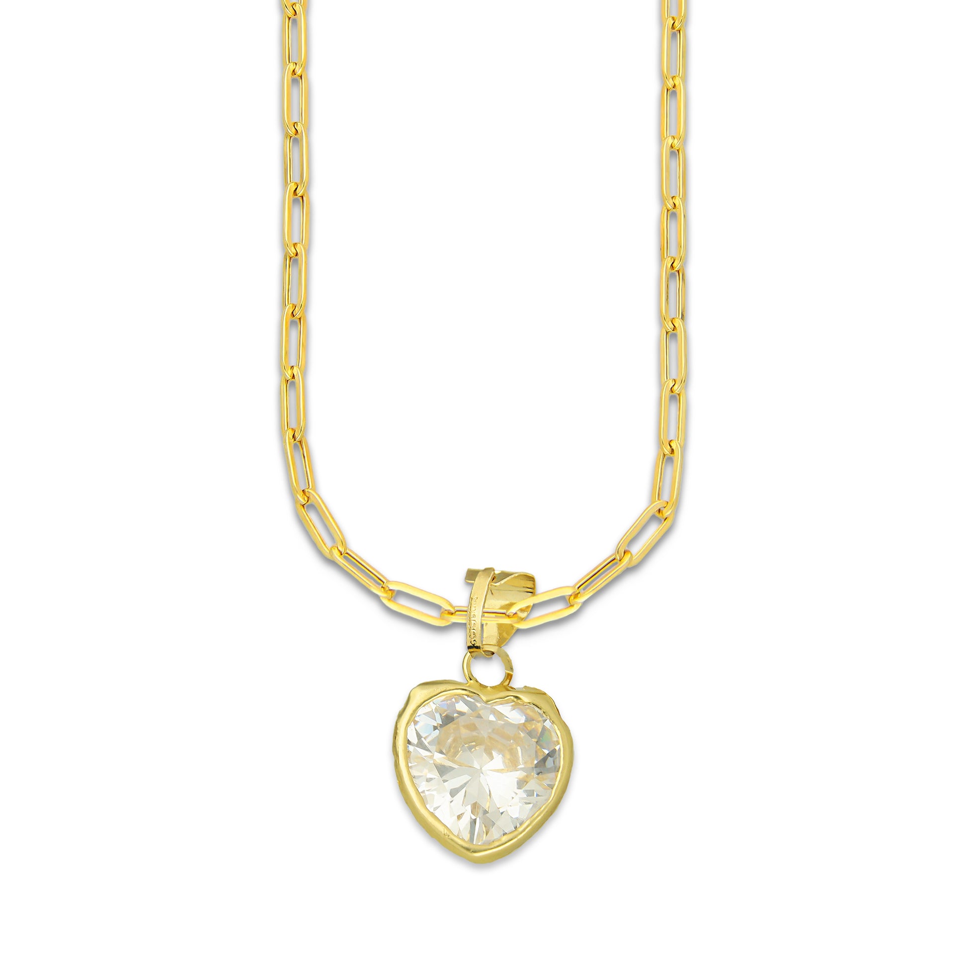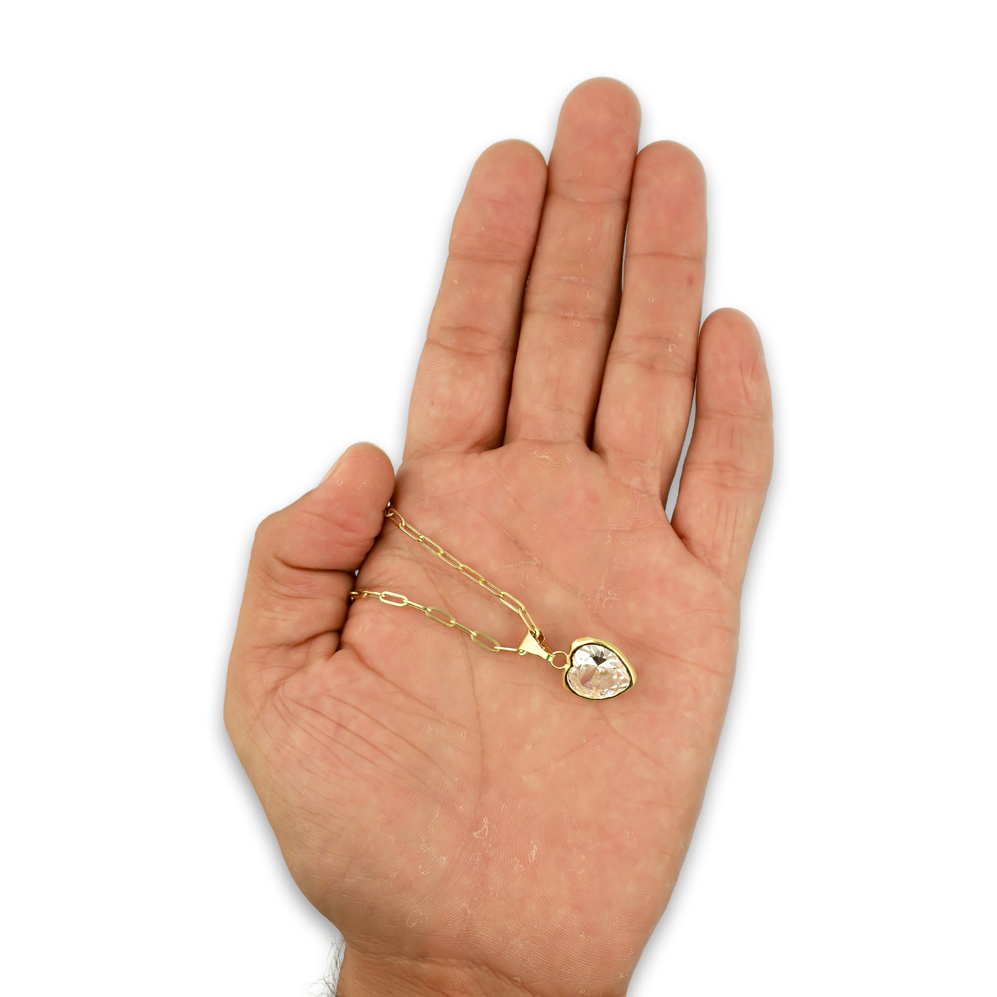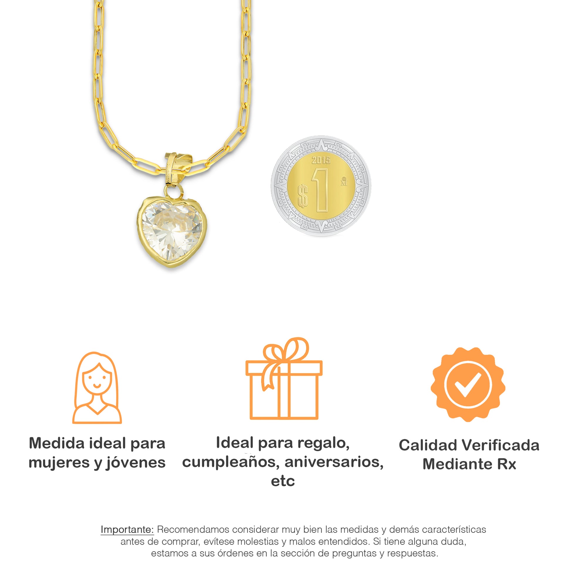 MR10DP103 Cadena Oro Sólido 10K + Dije Oro Sólido 10K EM Corazón con Bisel Liso Blanco 1.3 cm x 2.2 cm
