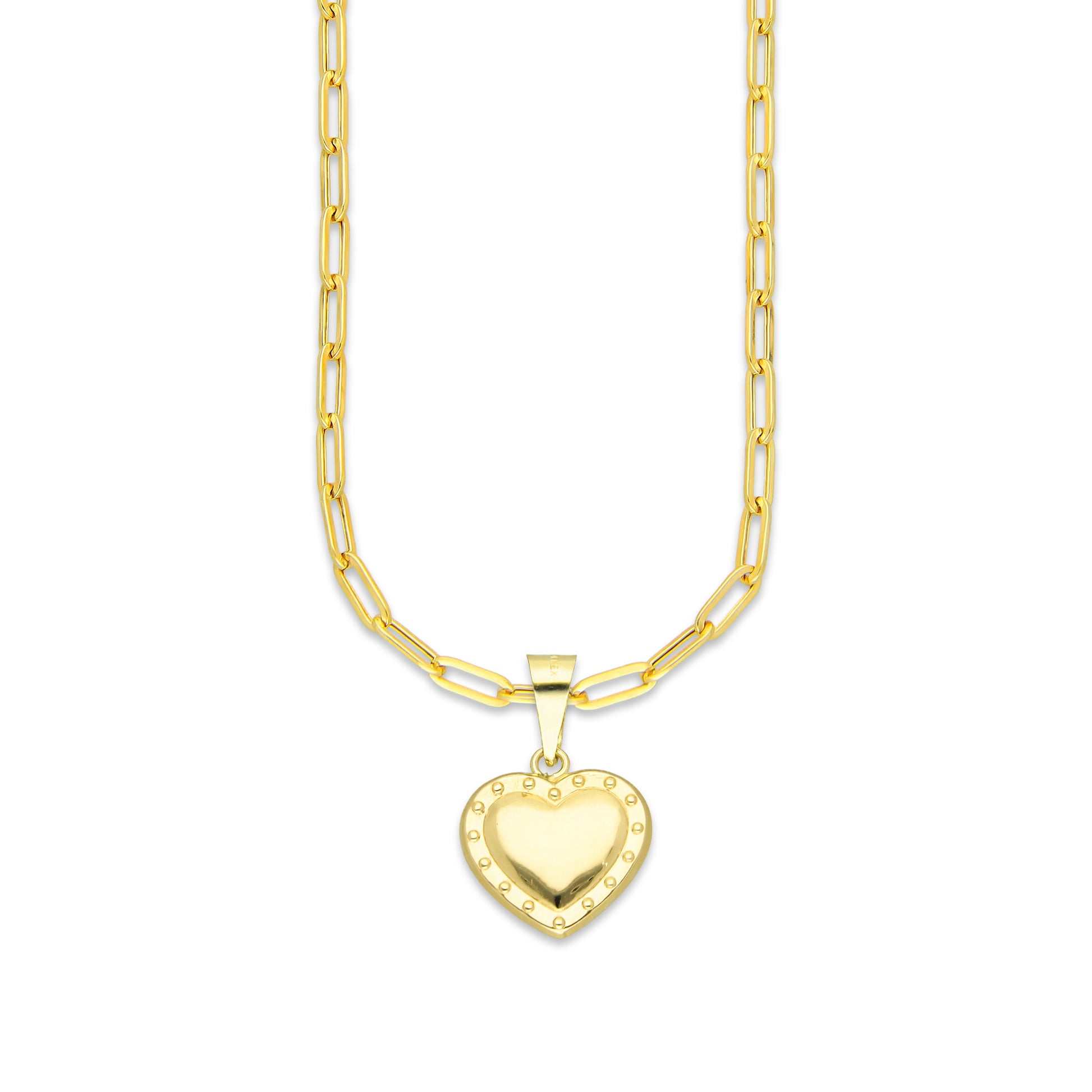 MR10DP104 Cadena Oro Sólido 10K + Dije Oro Sólido 10K EM Corazón Liso Bombeado Remaches 1.3 cm x 2 cm